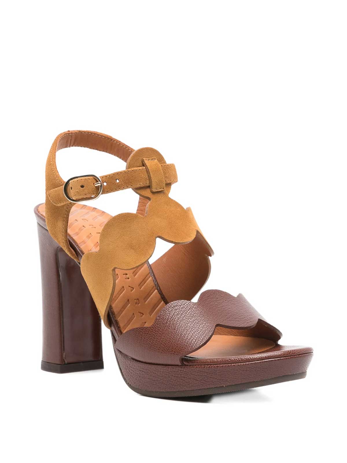Brown scalloped edge block heel buckle-fastening ankle strap this piece comes complete with a protective dust bag.