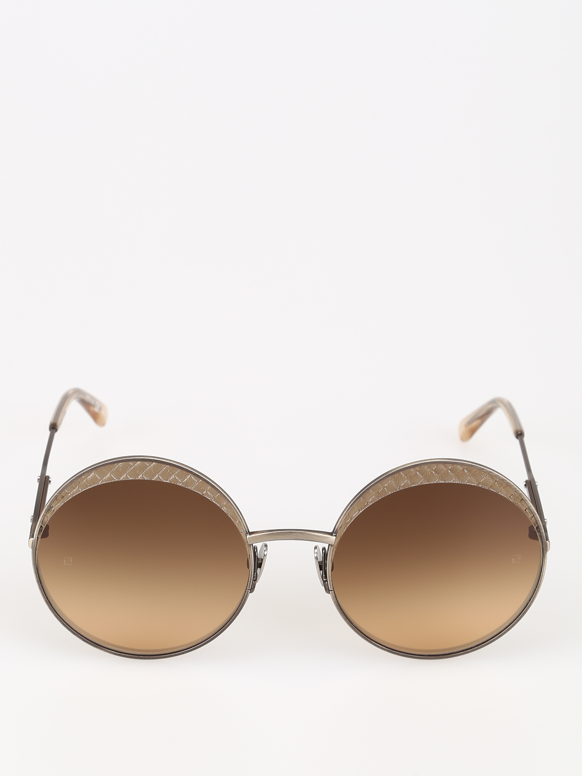 Satinized metal over round sunglasses featuring Intrecciato textured gradient brown lenses.