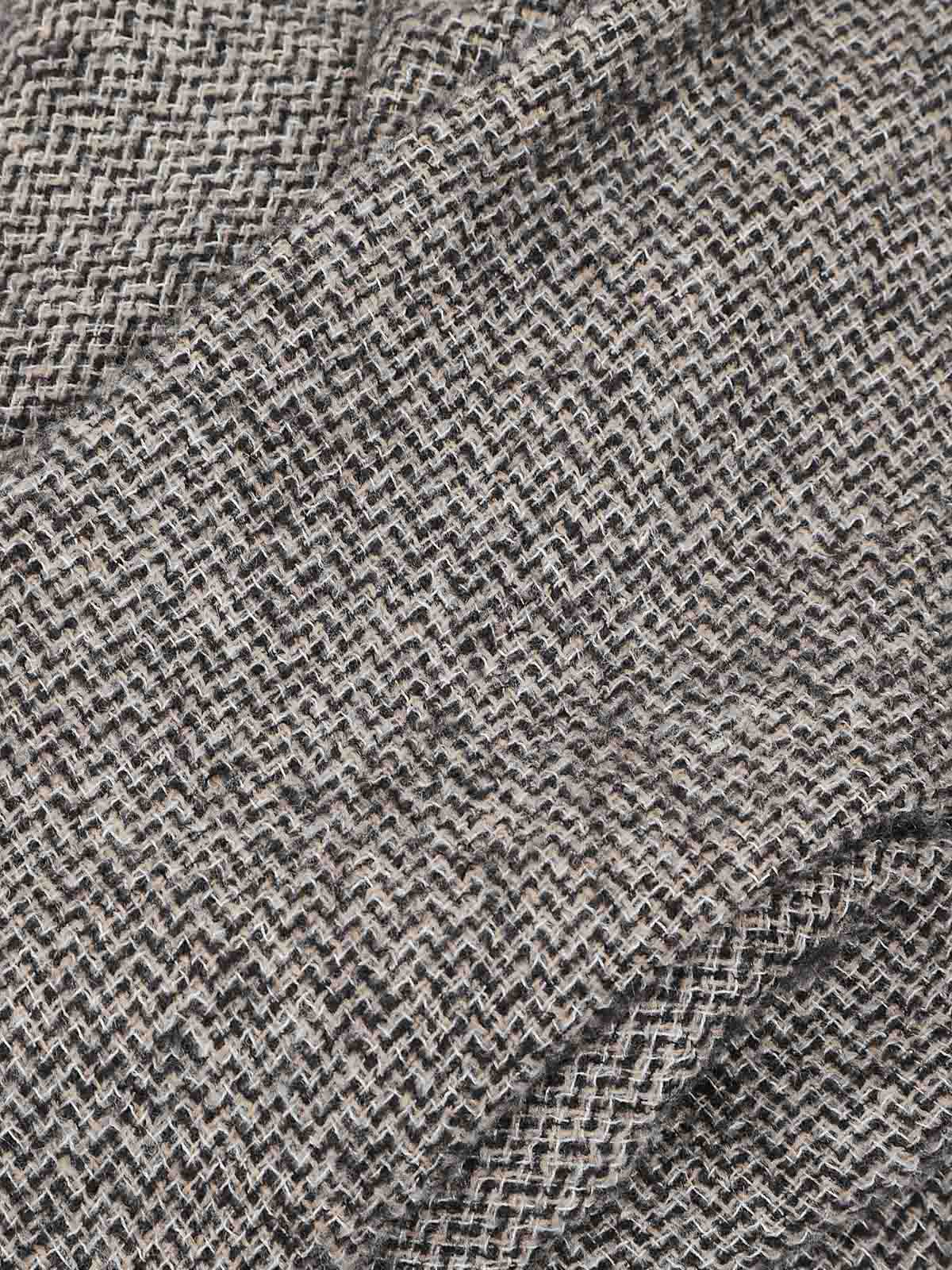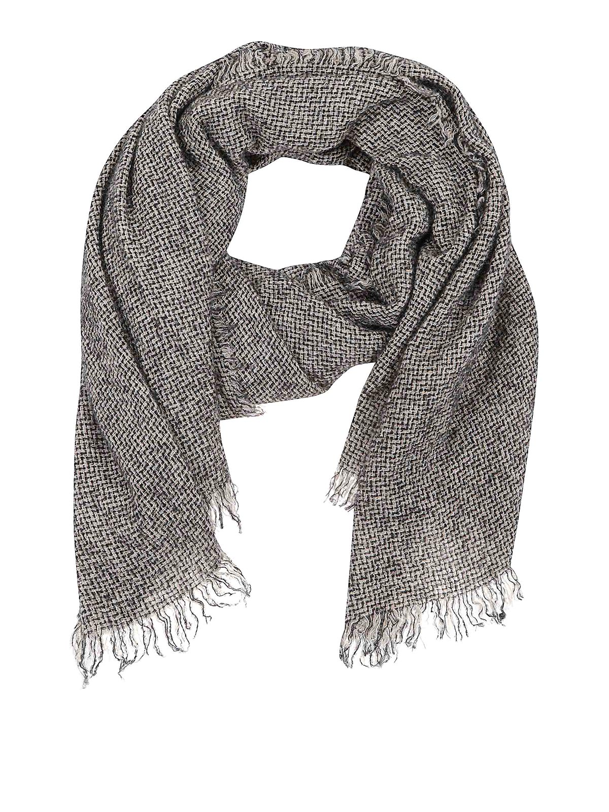 Beige and black patterned cashmere wool scarf, fringed on all sides, cm