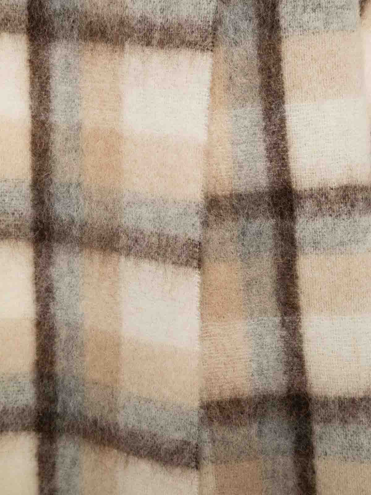 Cream white/multicolour knitted construction brushed effect check pattern classic hood armholes fringed edge