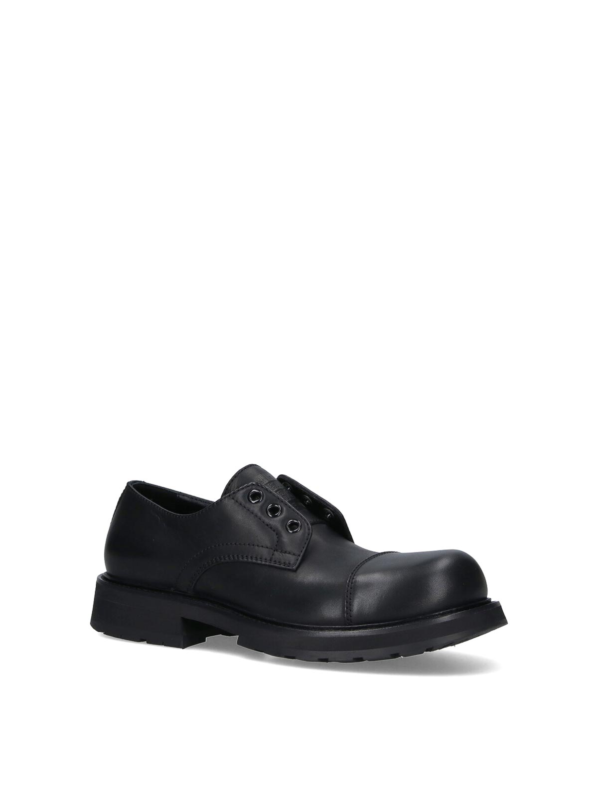 Balenciaga truck derby shoes, in black bull leather, round toe, raised stitching, logo engraved on the tongue, logo detail embossed on the back sole, slip-on fit, rubber sole.