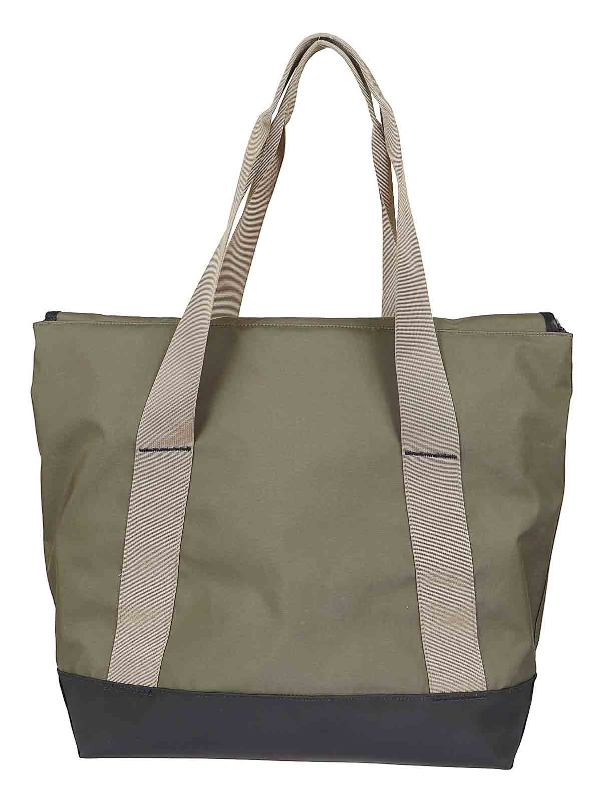 Olive black nylon duffle bag, double fabric handles, one external pocket, iconic embossed logo, flap closure, press stud and zip, two internal pockets, one maxi internal pocket closed by zip, 51x40x20