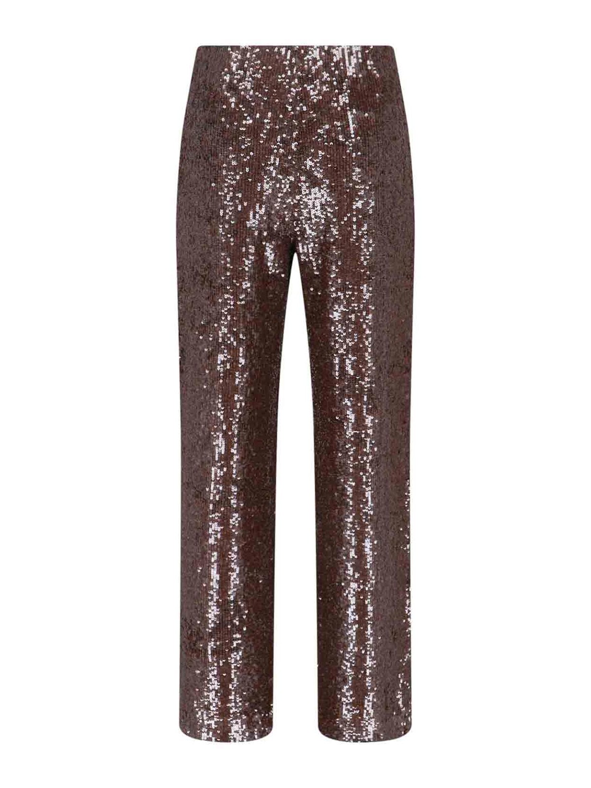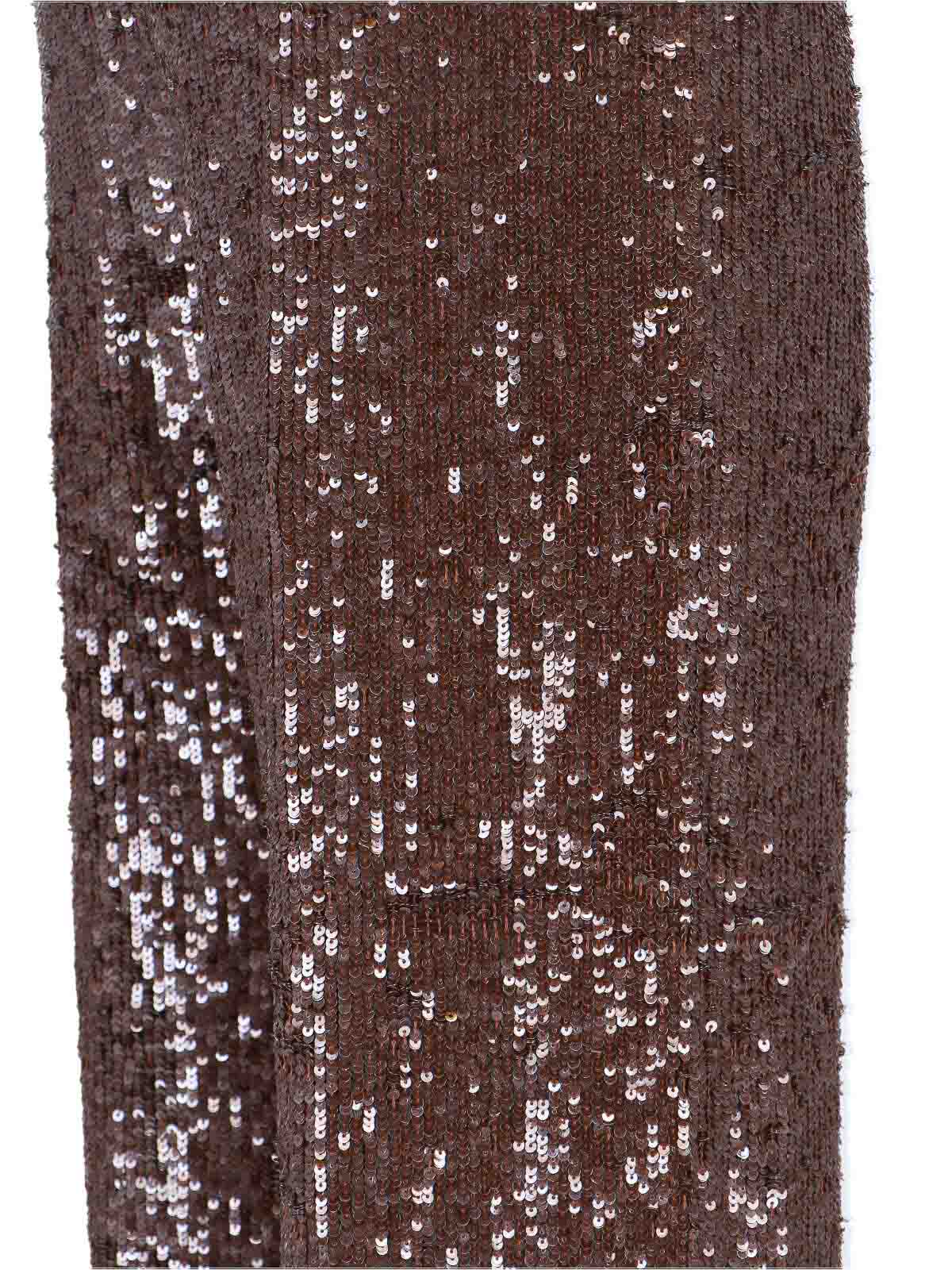 Sequined trousers p.a.r.o.s.h. in brown stretch fabric, medium waist, straight leg.