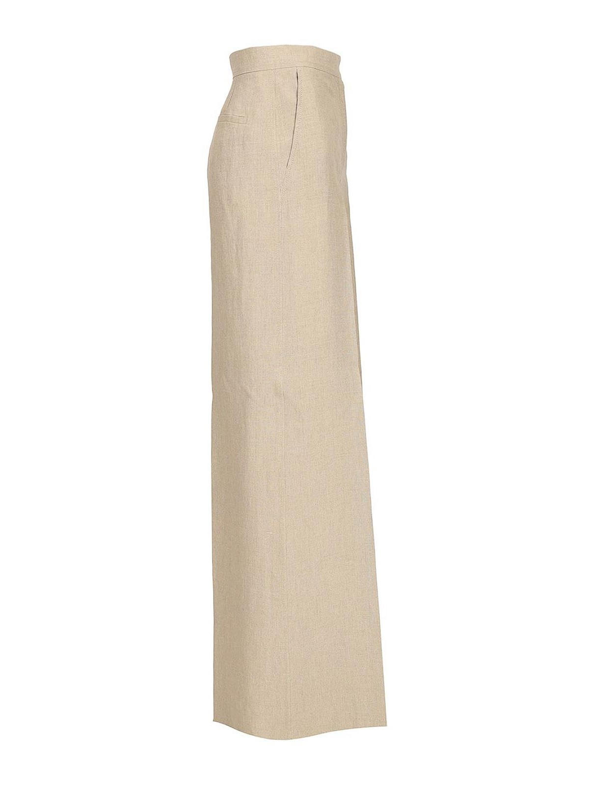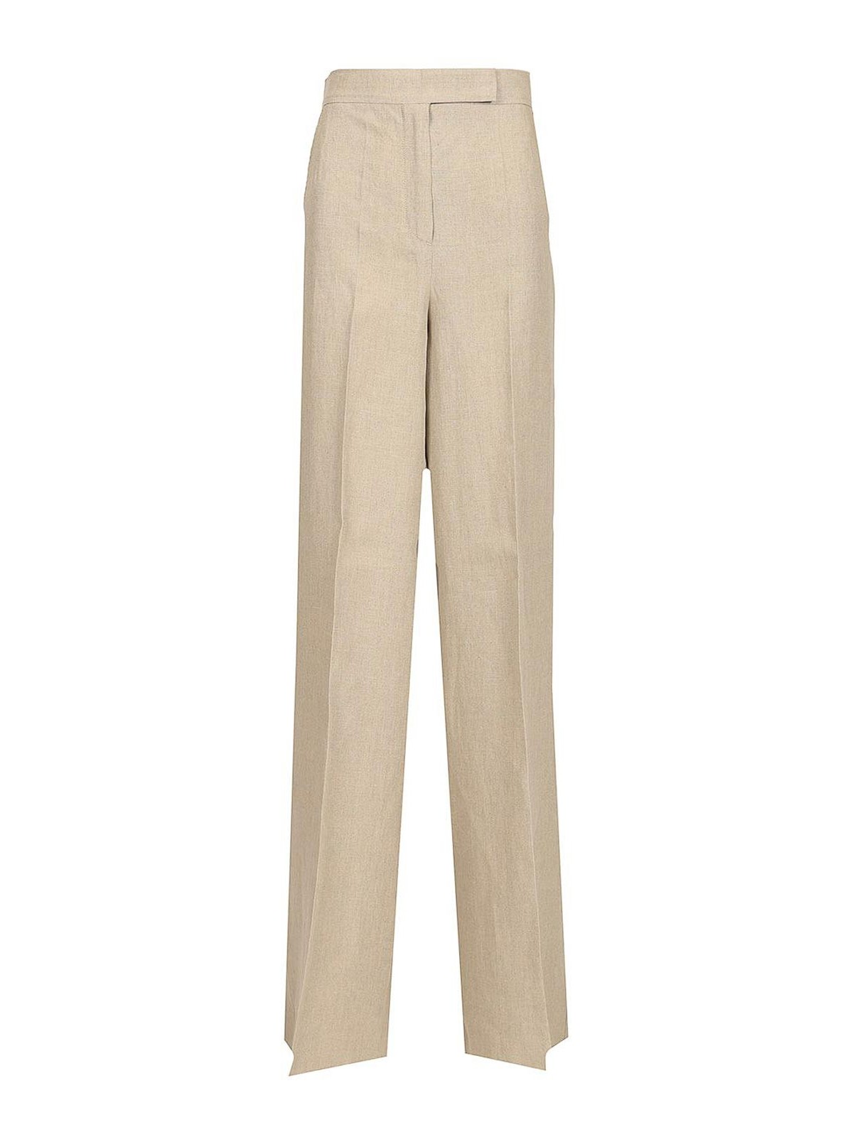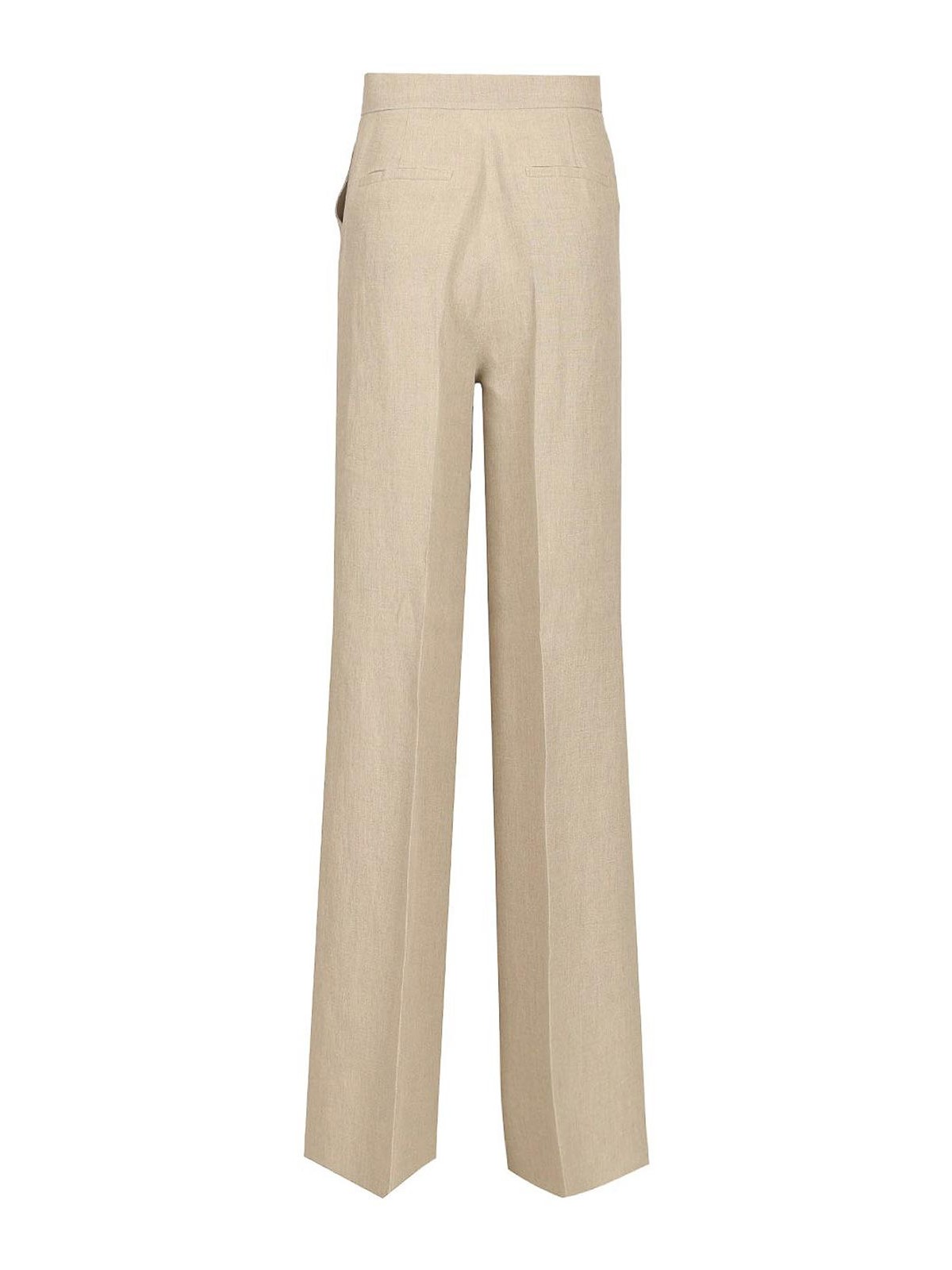 sequoia trousers by max mara in linen canvas, with wide leg, slightly high waist and front pleat