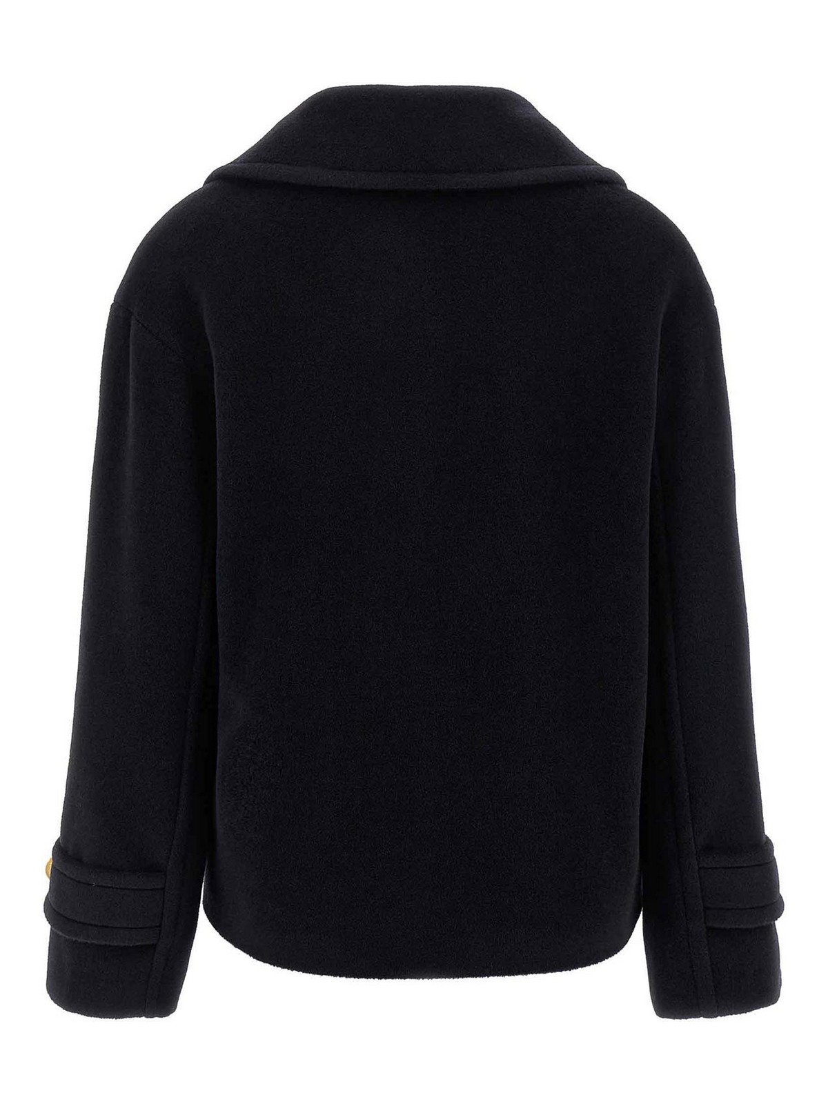 sheila' double, breasted short coat with button lapel collar pockets long sleeves with dropped shoulders monogram