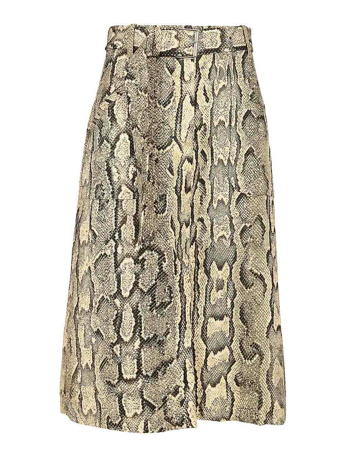 sheraz skirt with jacquard snake print adjustable waist belt with buckle front slit