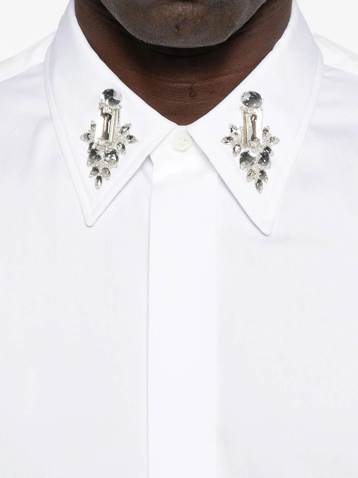 White point collar embellishment long sleeves button