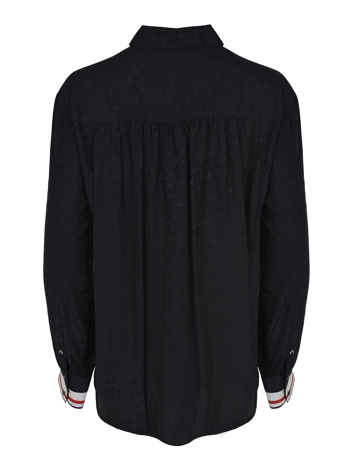 Pinko cassata shirt made of black viscose. classic collar. love birds logo pattern. cuffs enhanced with a striped print. button closure. 100% viscose.