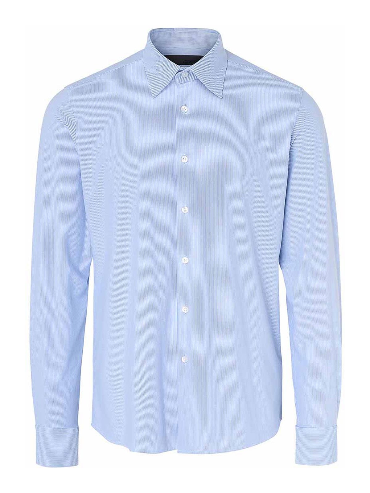 Micro-patterned light blue shirt from rrd featuring a regular collar, mother-of-pearl buttons on the front and cuffs, slim fit, jacquard workmanship, crease-resistant, easy-care.