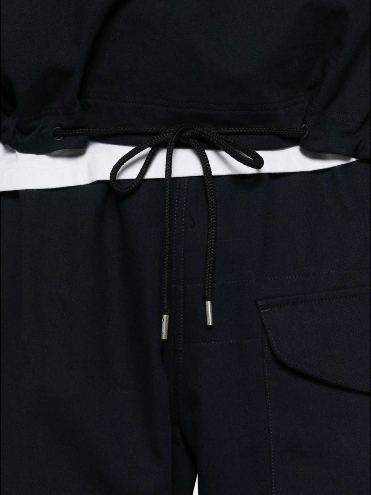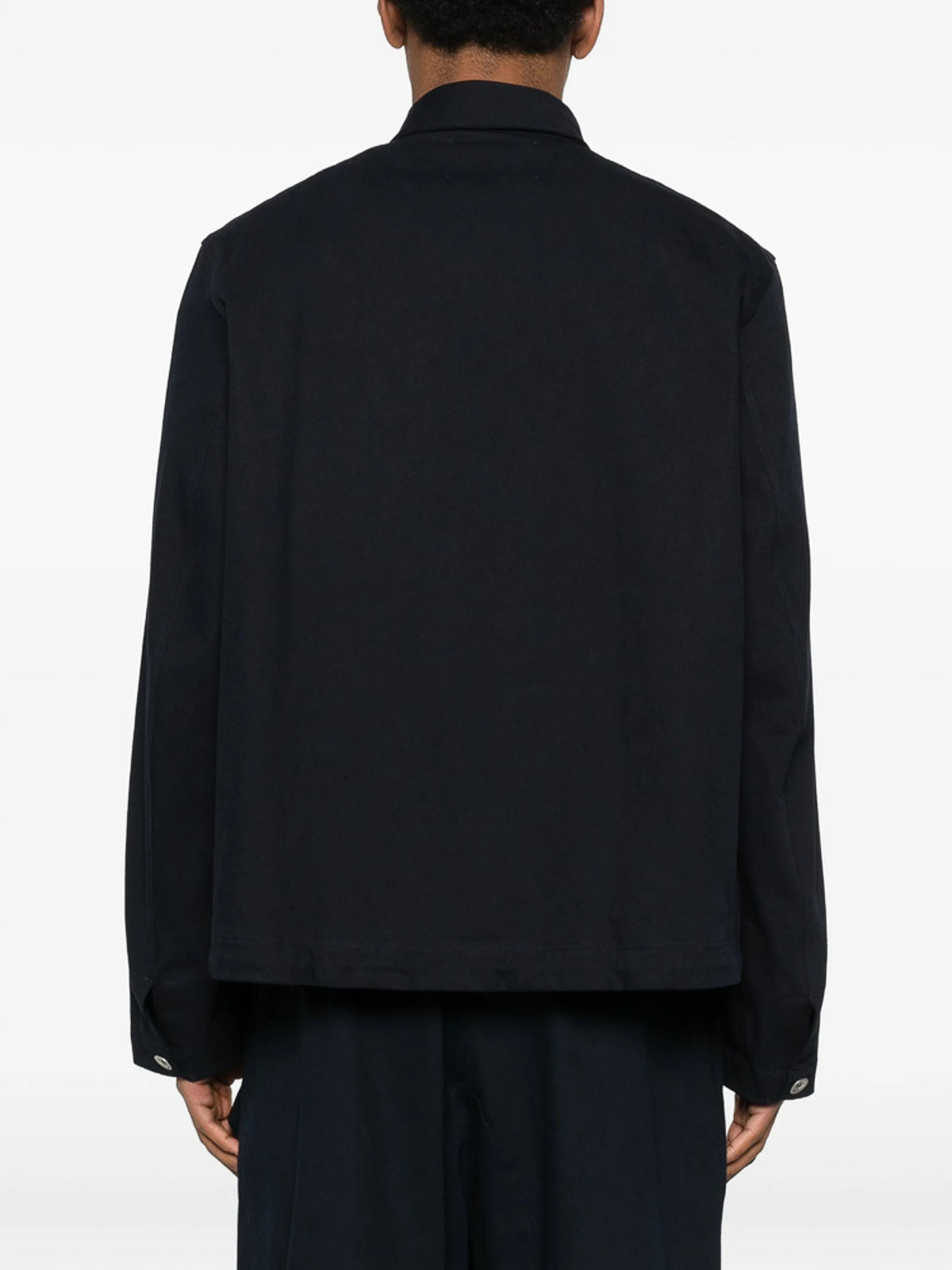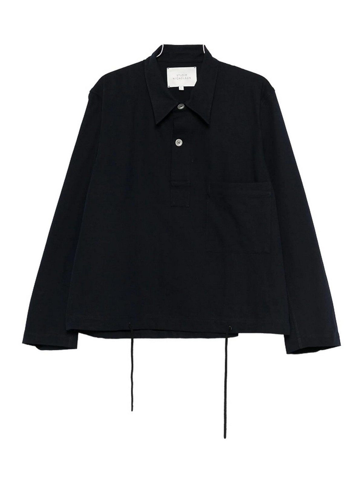 Blue chest pocket silver-tone buttons long sleeves drawcord hem