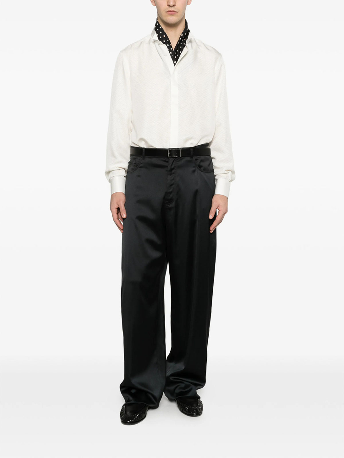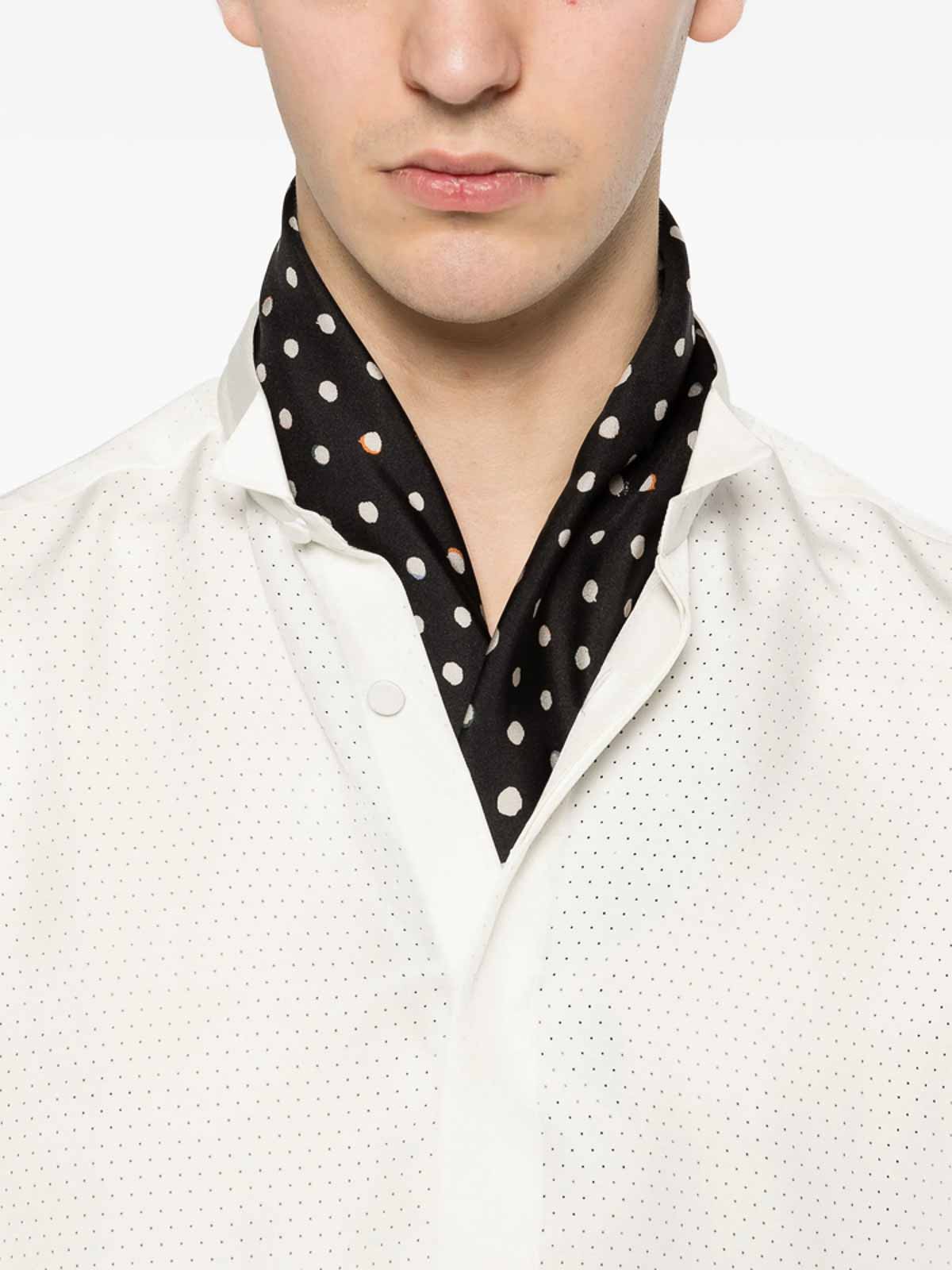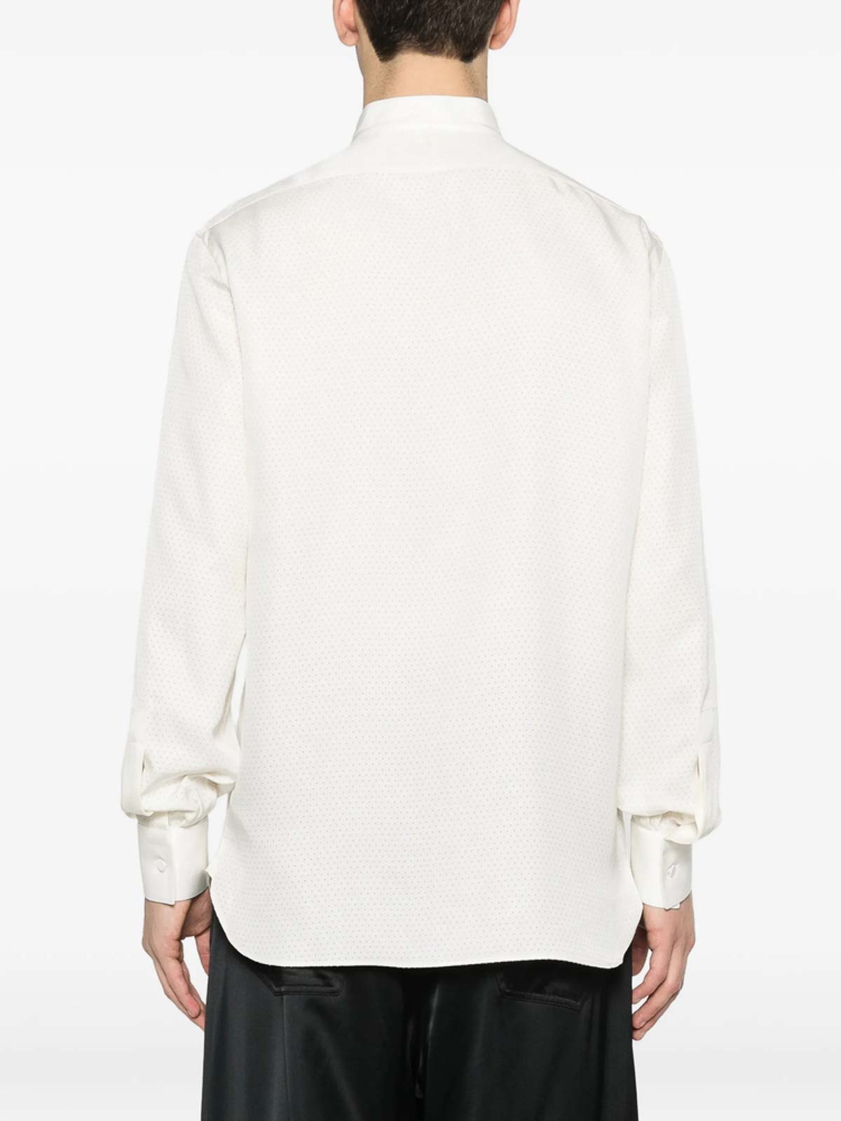 White band collar button fastening long sleeves buttoned cuffs perforated dot pattern