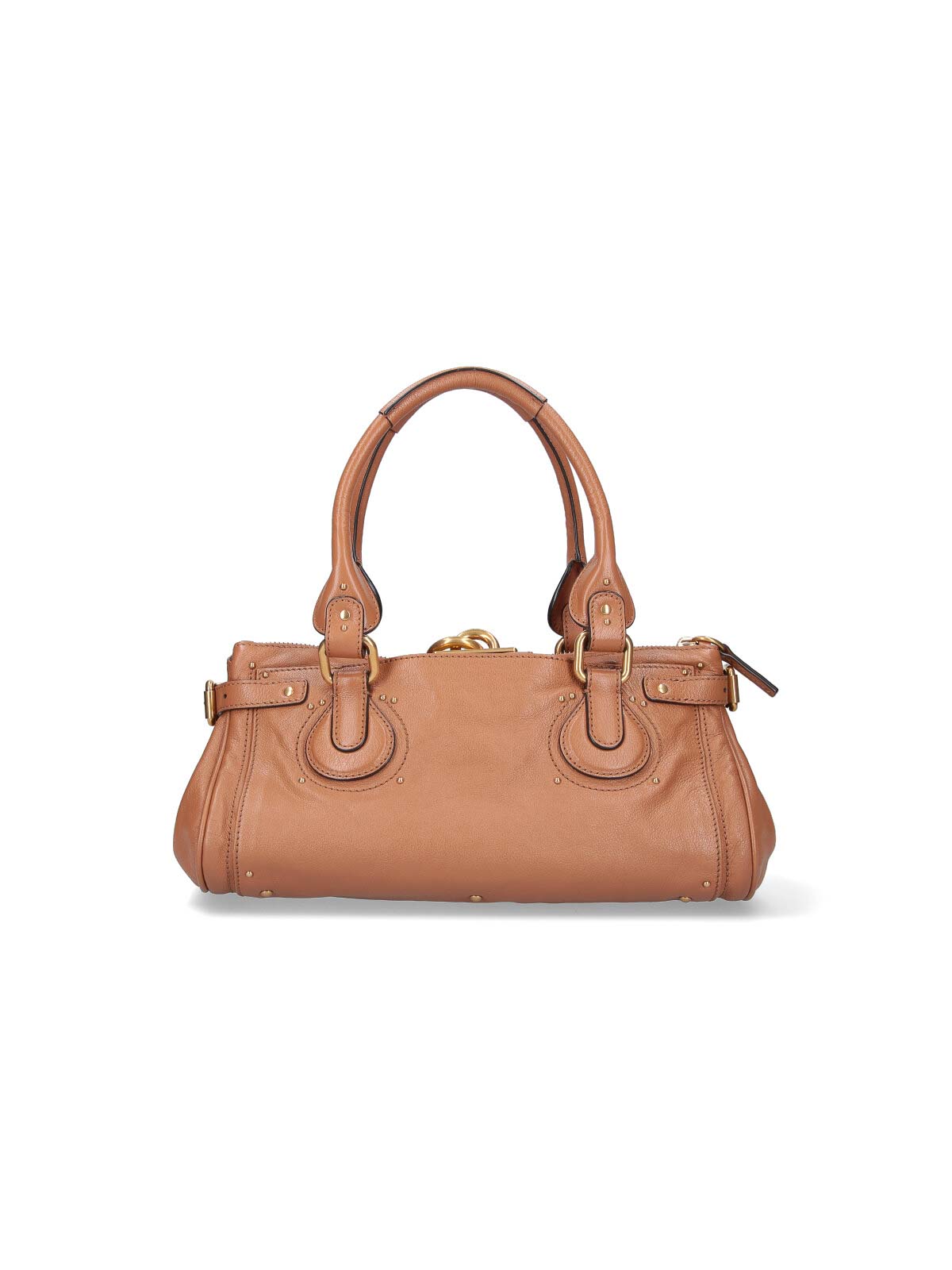 Chlo paddington shoulder bag, in brown buffalo leather, two top handles, zip closure and golden padlock, leather logo on padlock, key charm detail, adjustable side golden metal buckles, all-over studs, one flat front pocket, one flat back pocket, one internal zip pocket, one main internal compartment.