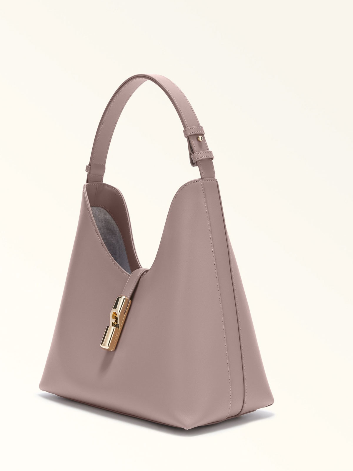 Hobo in leather bag an internal wall pocket an internal pocket with adjustable zip flat pockets open pockets with zip logo furla purer