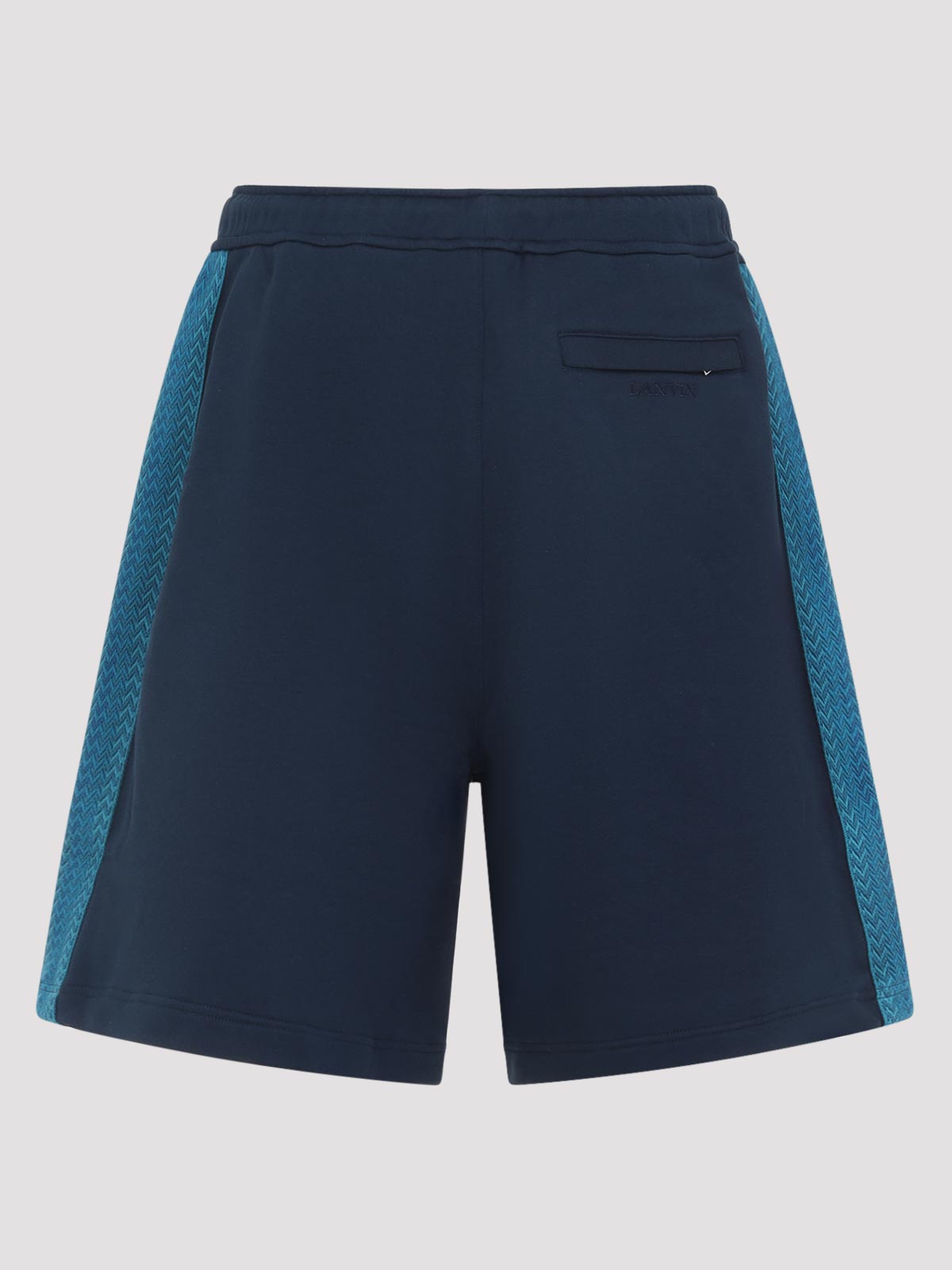Lanvin side curb blue cotton bermuda. blue cotton, elastic waistband with drawstring, side pockets, curb details along the sides, welt pocket on the back, relaxed fit.