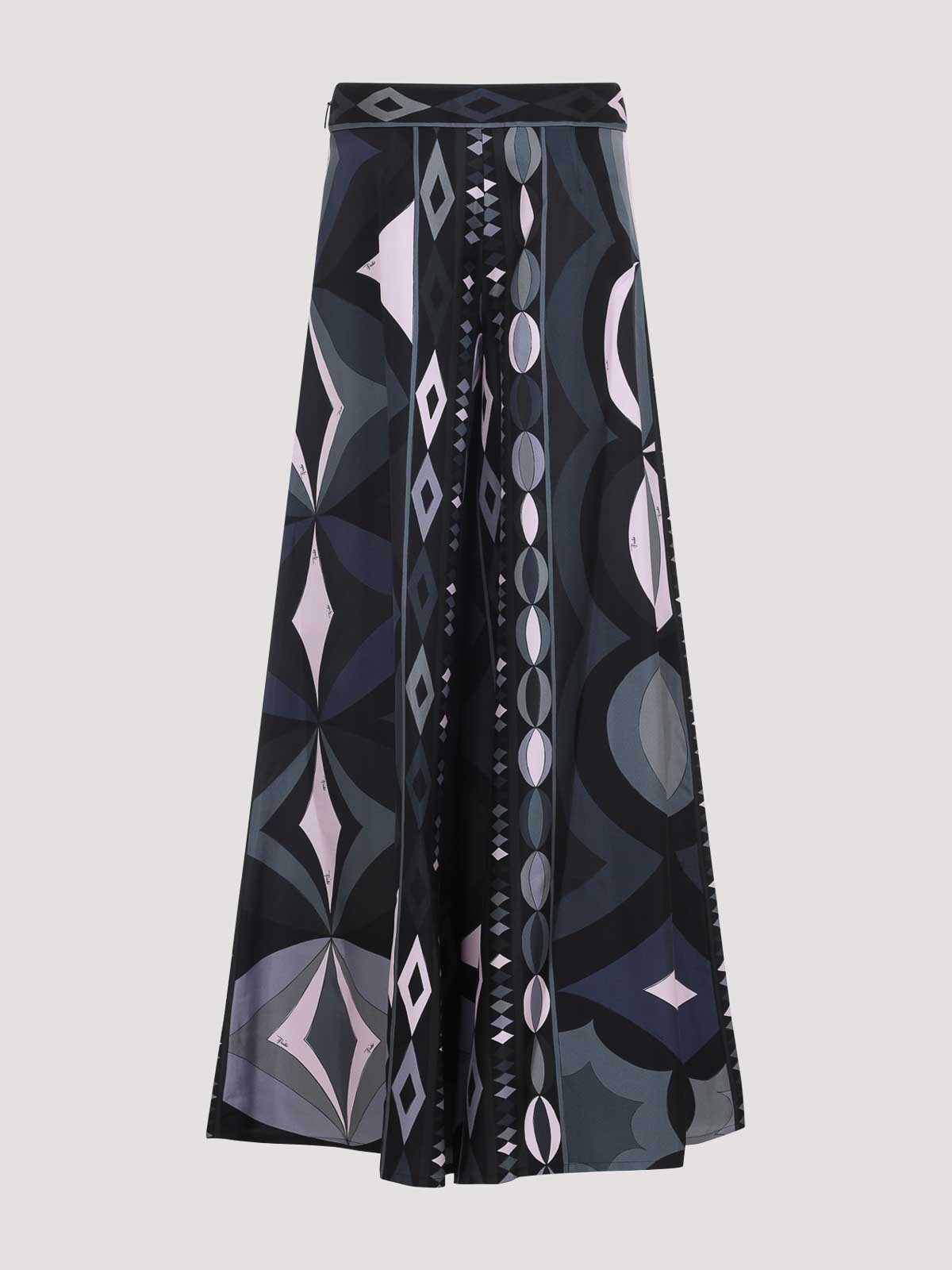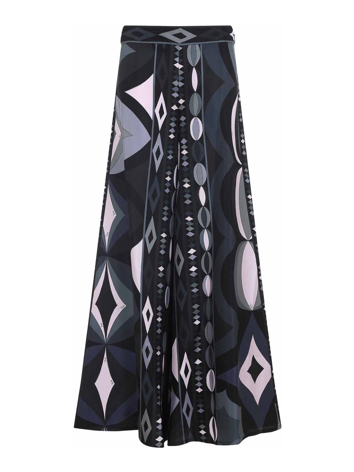 Pucci black and pink pants crafted from black and pink twill signature print all over fitted waist side concealed zip wide flared leg