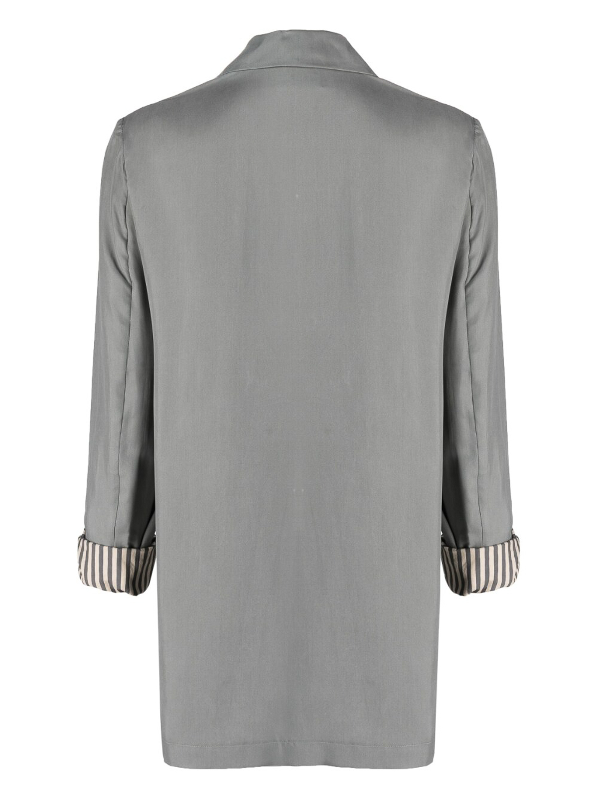 Single-breasted silk blazer from alysi featuring light grey silk peak lapels chest welt pocket front button fastening long sleeves and straight hem