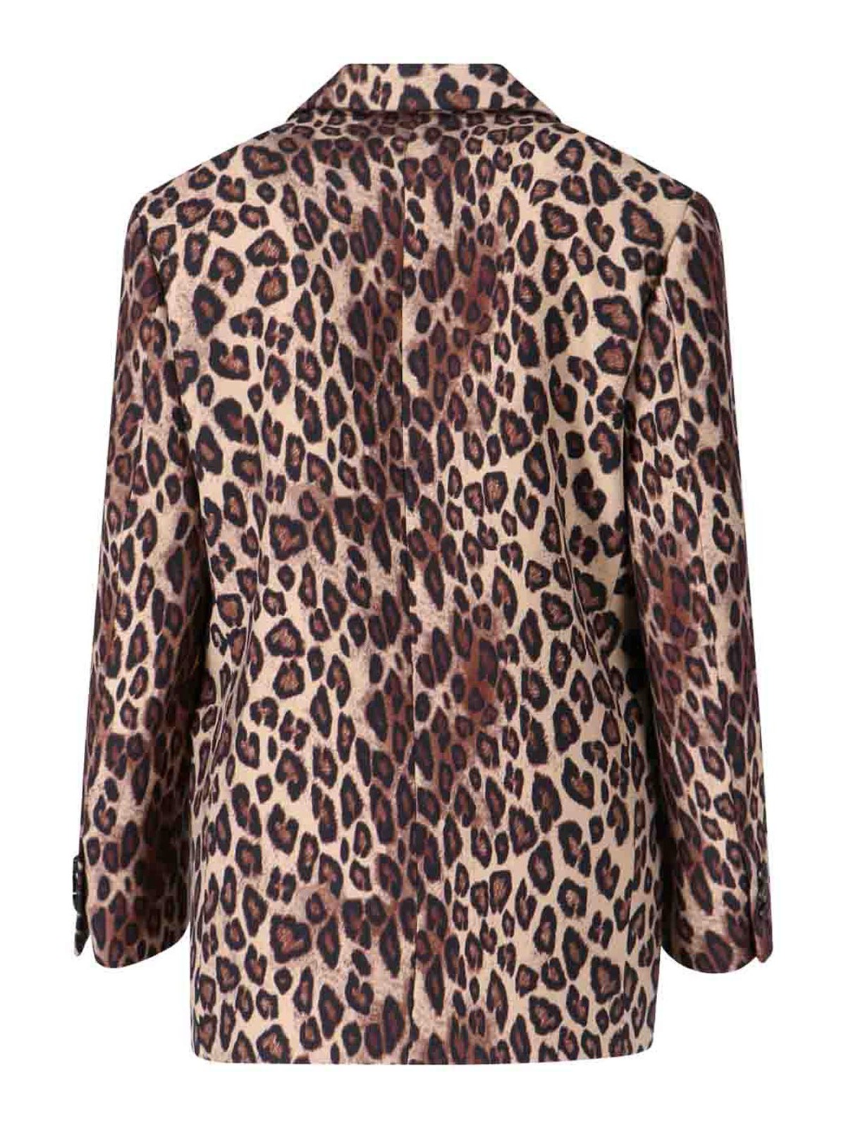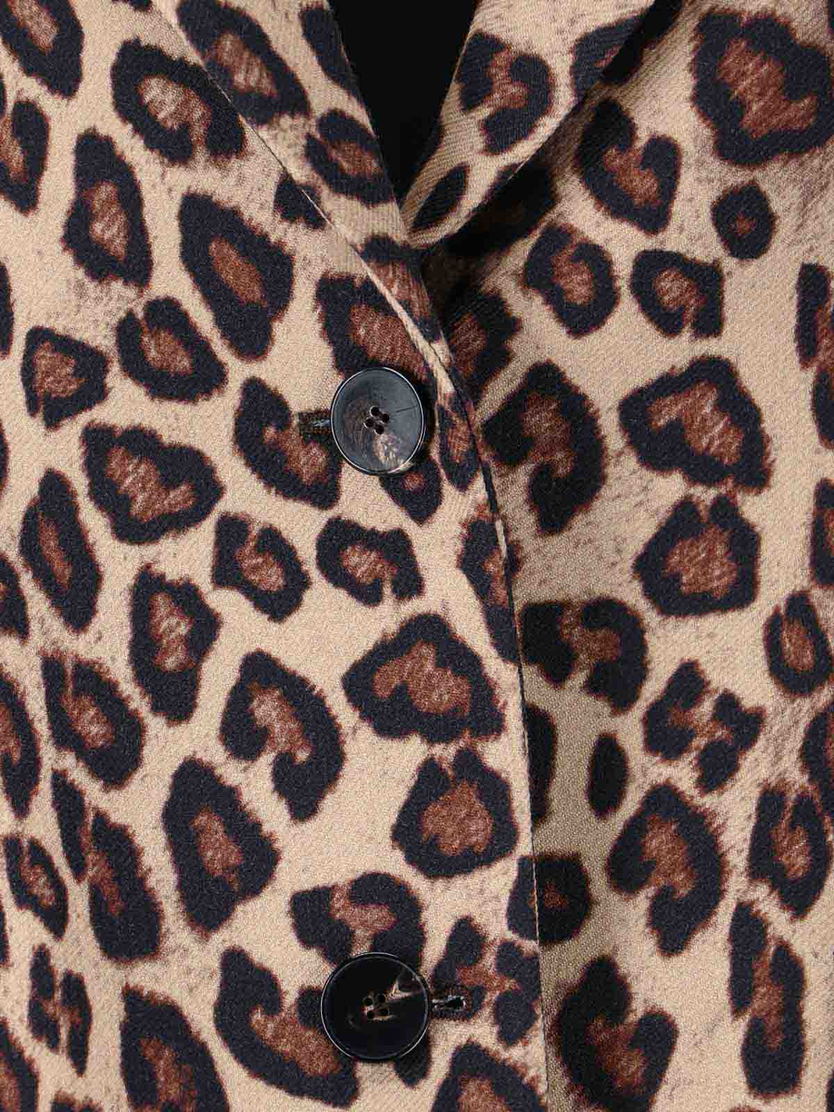 Alberto Biani single-breasted virgin wool blazer, brown, all-over animal print, notch lapels, button closure, one flat front pocket, two side pockets, rear vent detail, buttoned cuffs, straight hem.