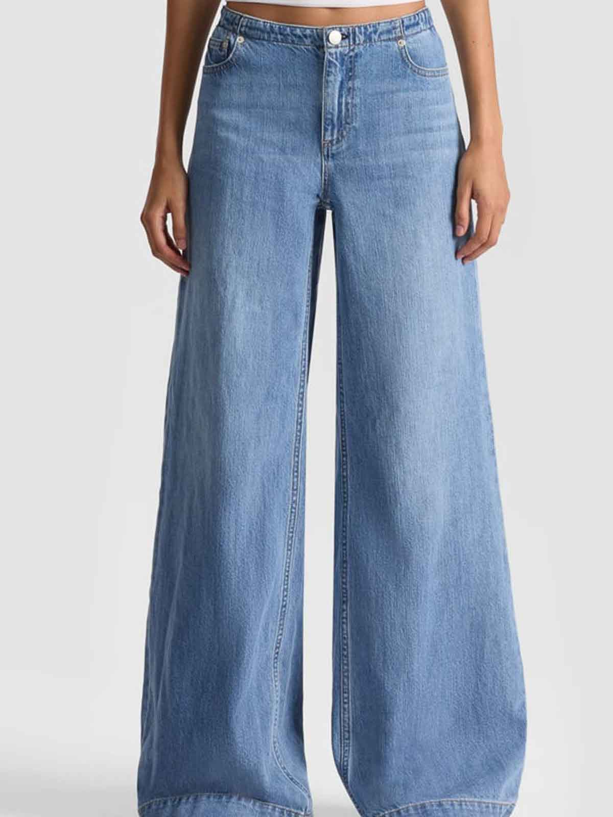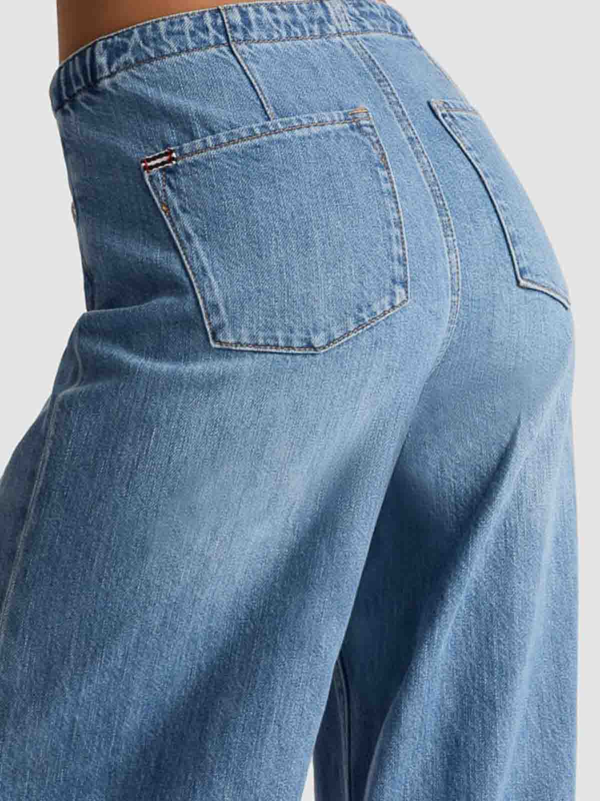 Wide-leg, front closure with hidden zip and button, five pockets, long design. composition 100% cotton
