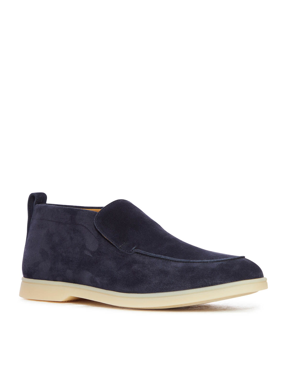 Suede, - opening with an elastic hidden under the tongue, tongue integrated into the, rear ring (pull tab) for easy fit, - box with slight lateral groove, color blue