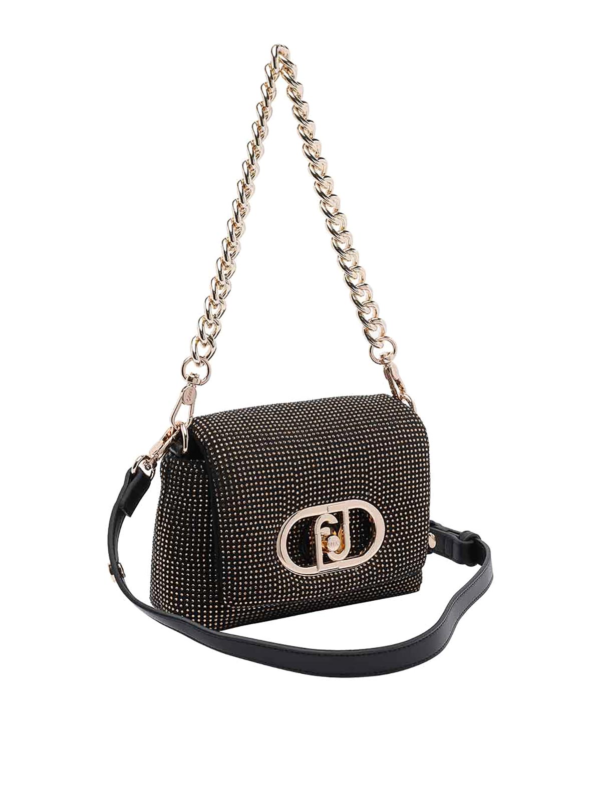 Liu jo small logo shoulder bag magnetic zipped and open pocket removbale chain strap frontal logo allover