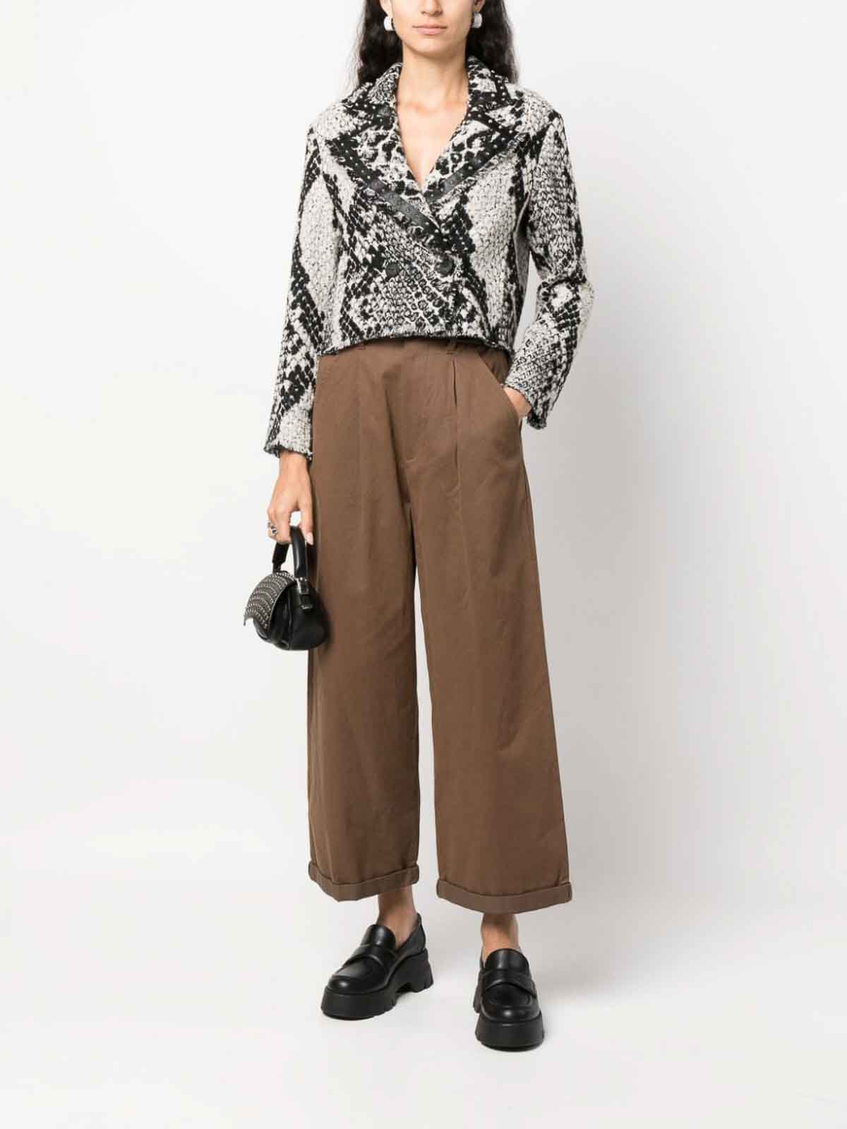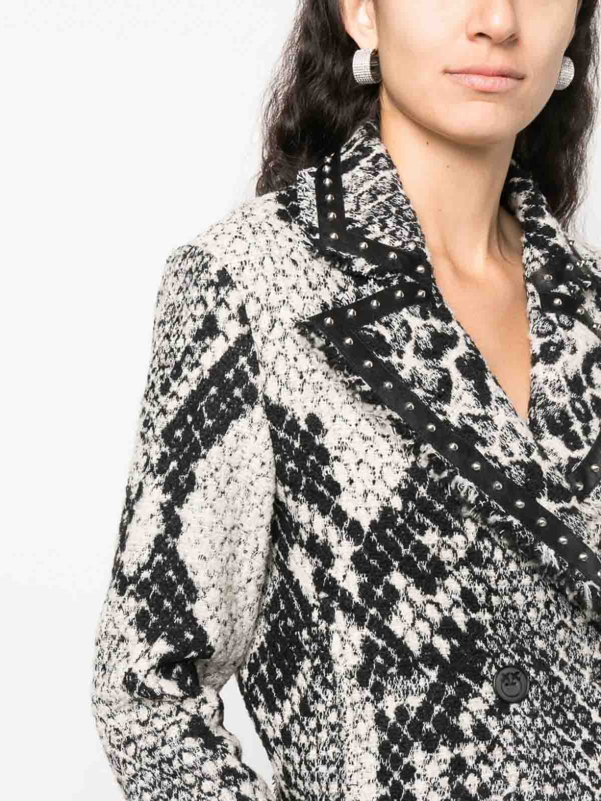 Snake-effect jacquard cropped jacket from pinko featuring black/grey snakeskin effect frayed edge full jacquard faux-leather trim silver-tone stud detailing notched lapels double-breasted button long sleeves straight hem and cropped
