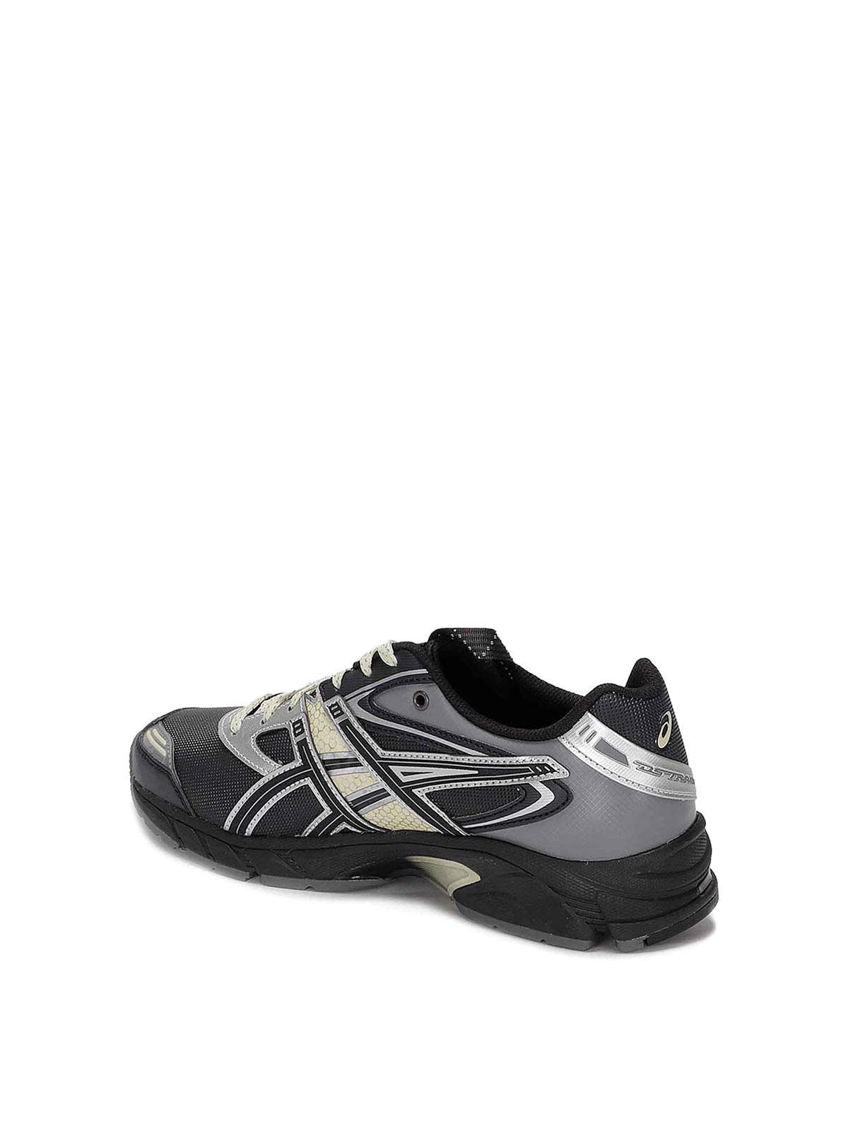 Sneakers made of synthetic leather and synthetic material, slightly stiff rounded toe, grooved sole.
