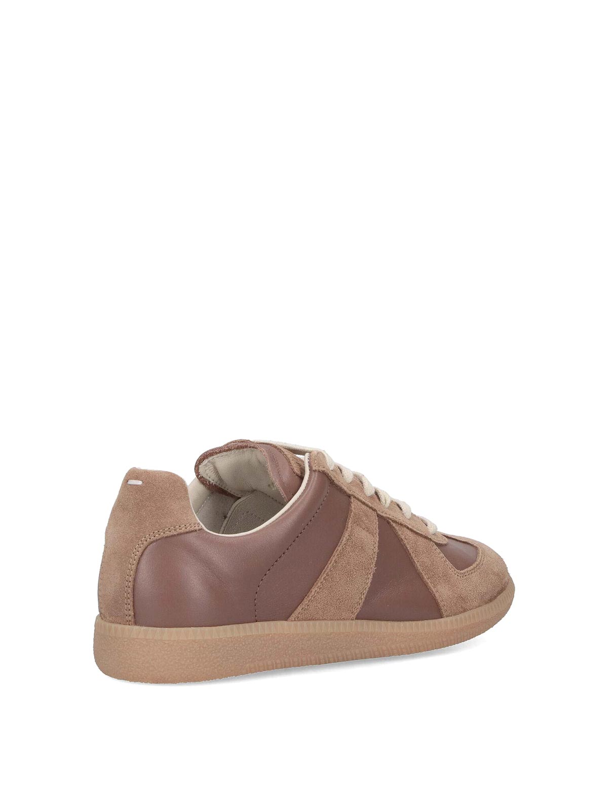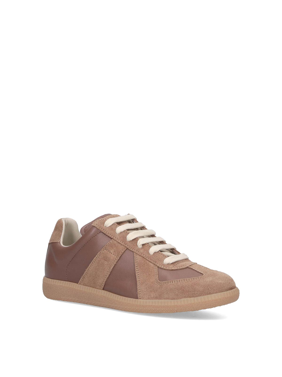 Maison Margiela replica sneakers, in brown calfskin, contrasting lace closure, suede details, contrasting stitching on the back, rubber sole.