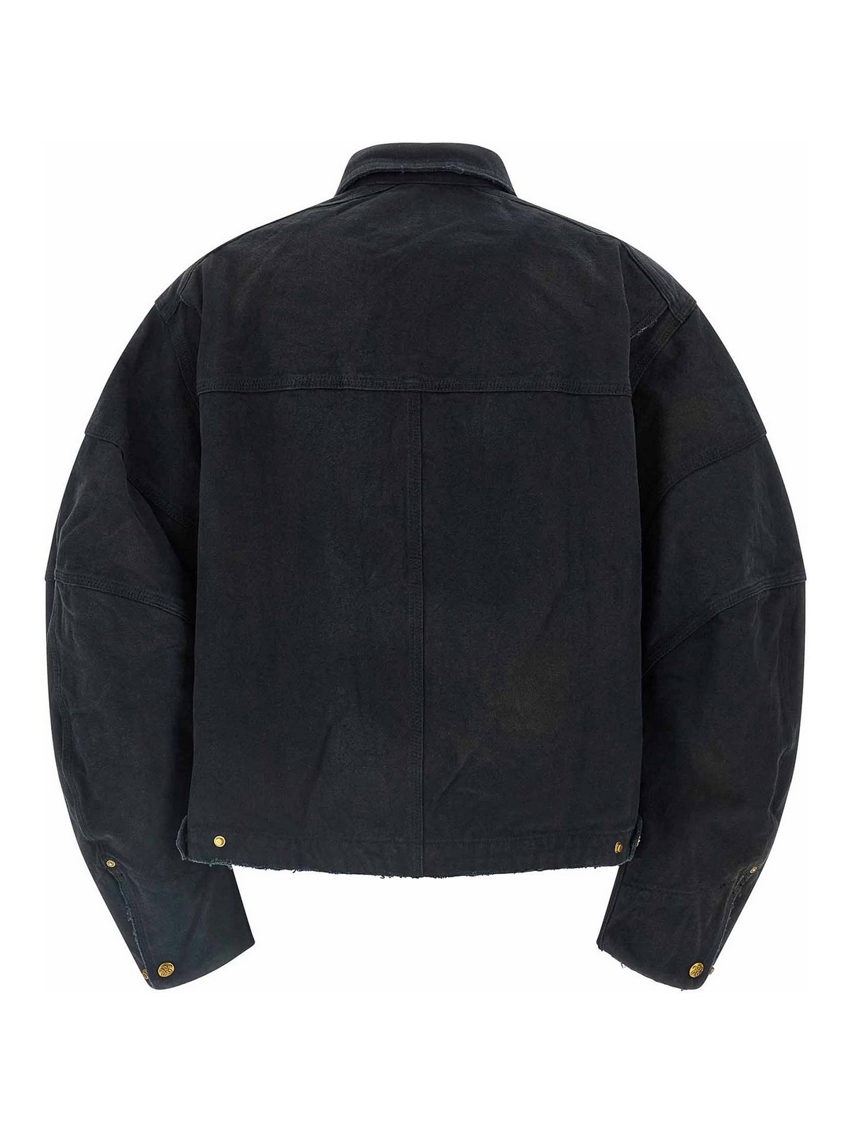 stotckton' jacket in used and vintage effect cotton canvas, workwear model, shirt collar, logo patch and front zip closure, pockets, long sleeves with adjustable cuffs and dropped shoulder, unlined.