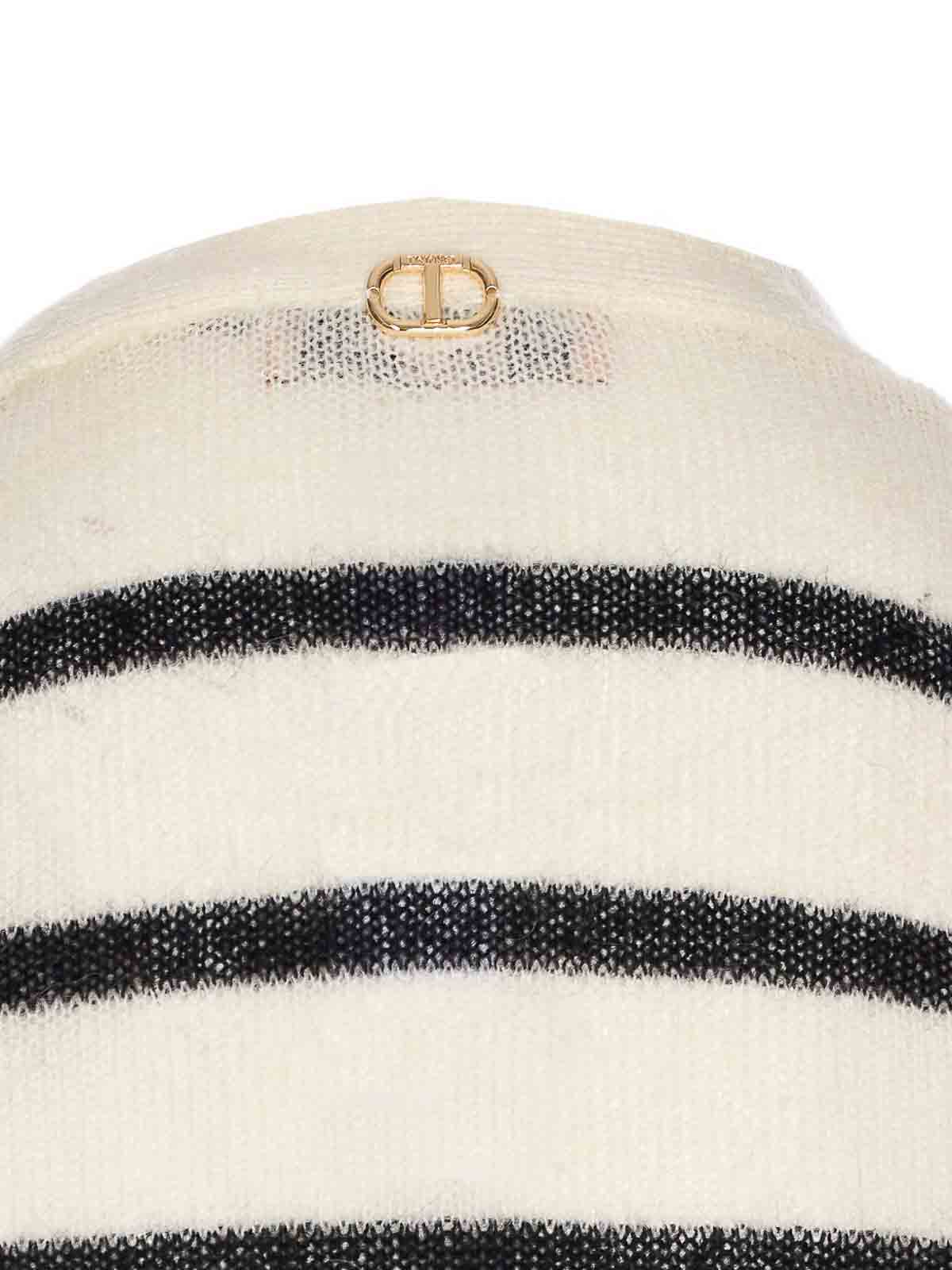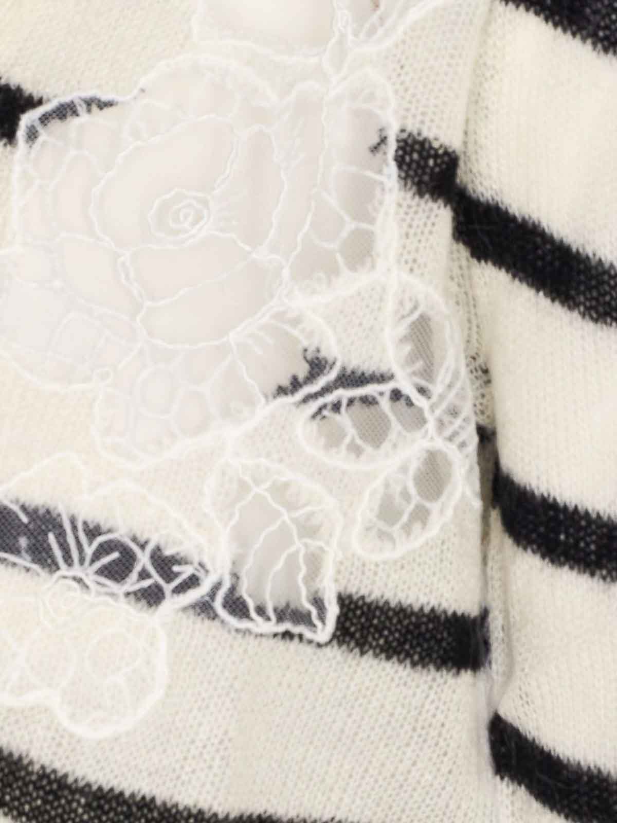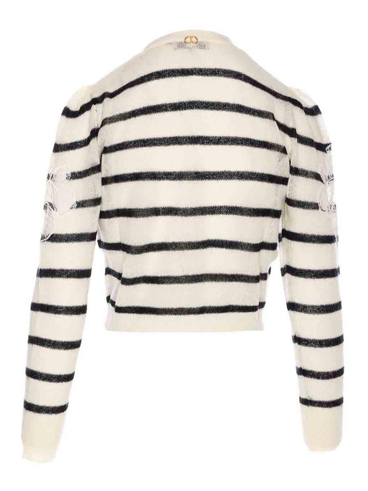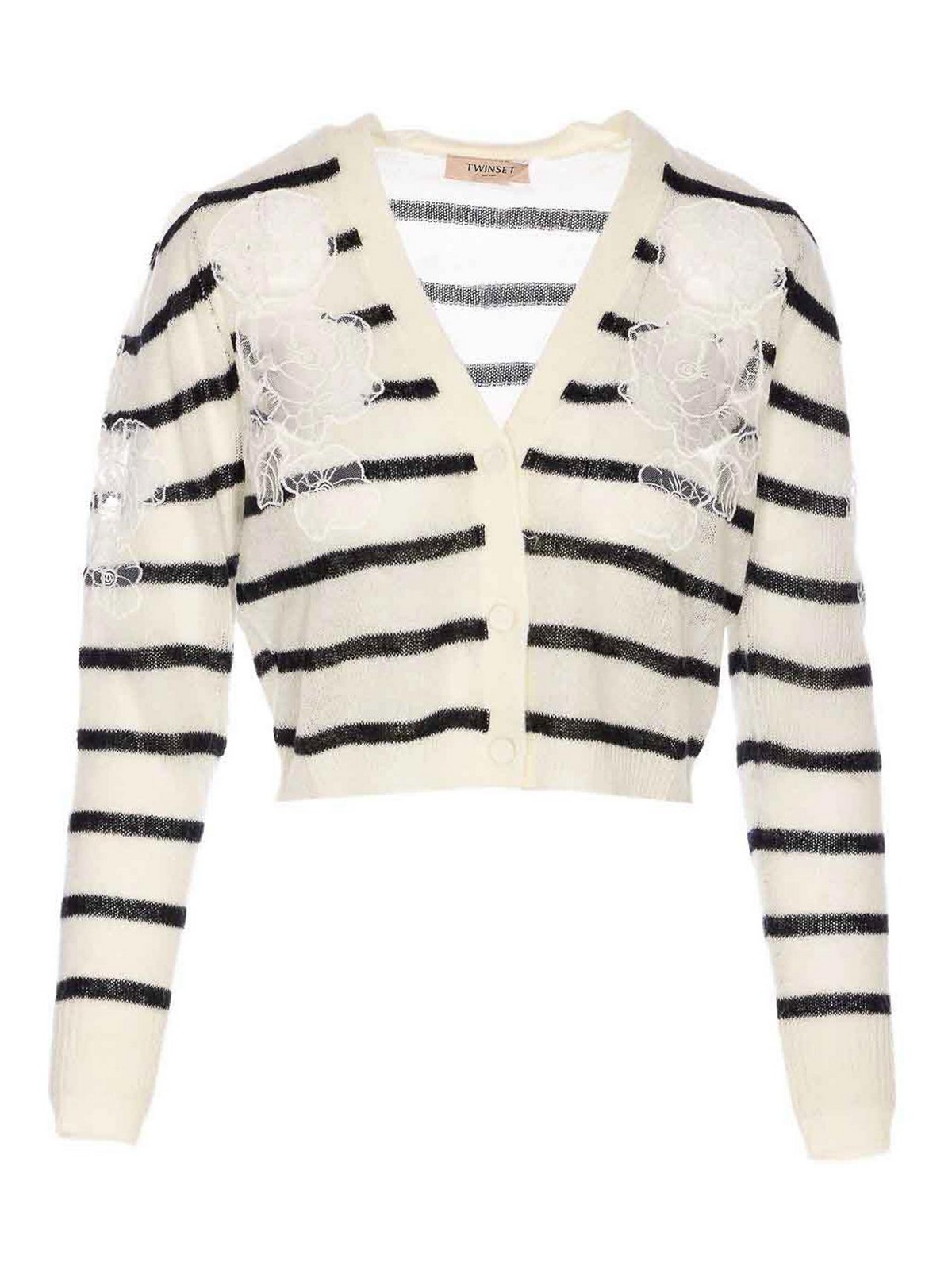 Floor Cardigan Features White Black Lines V -neckline Flower Decoration Long sleeve with buttons