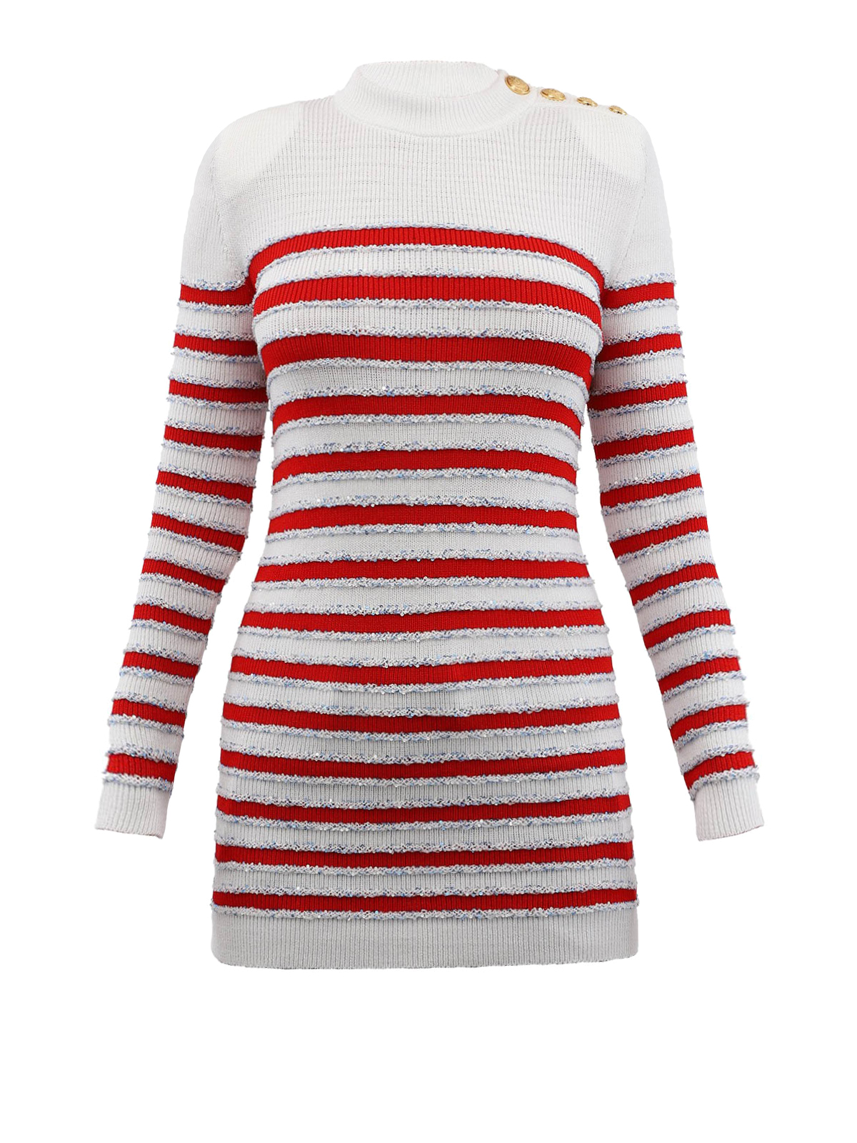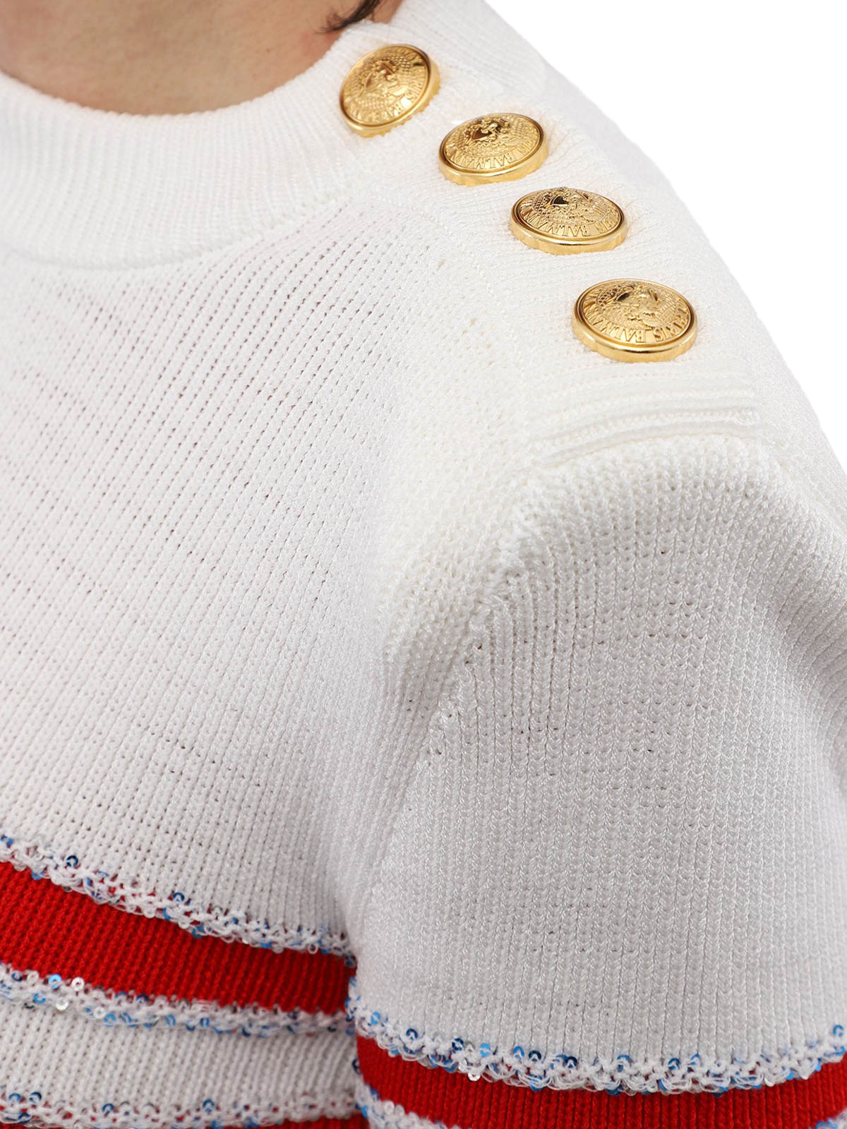 Striped jumper detailed sequinned details, padded shoulders, gold-tone buttons on the left sleeves, crew neck and long sleeves.