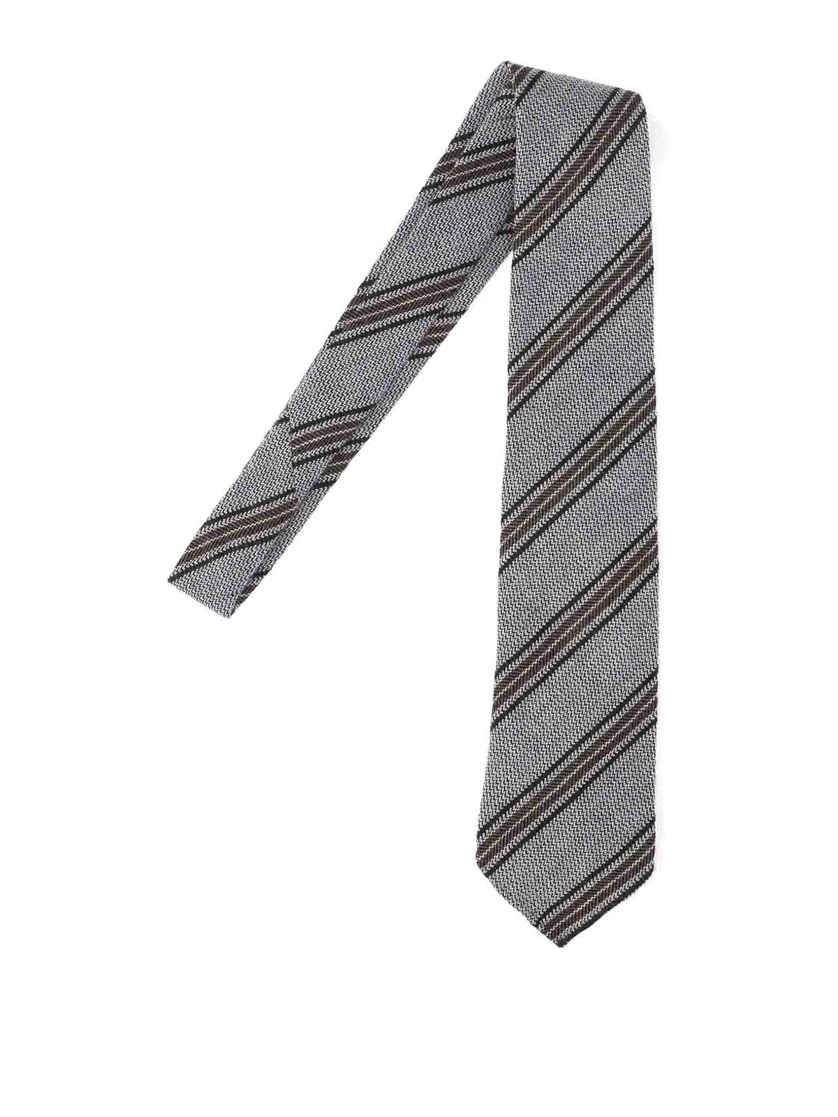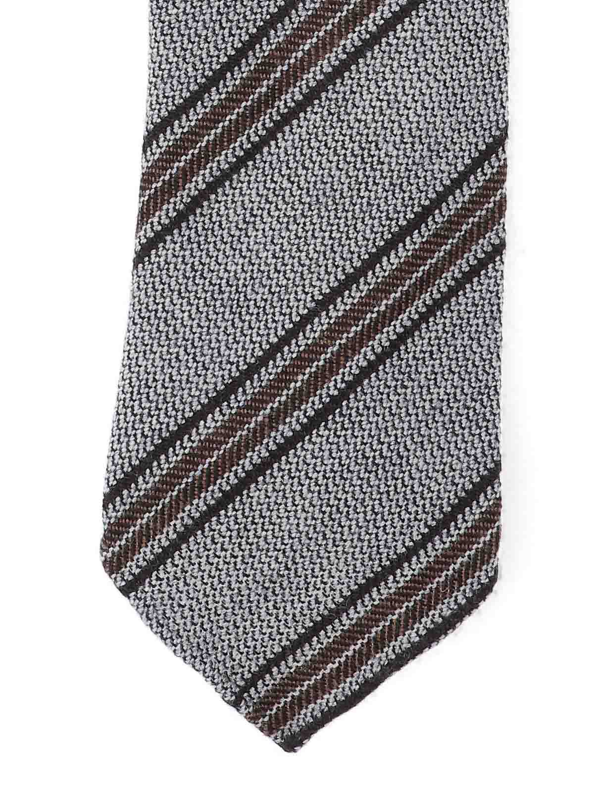 Cesare Attolini striped tie, in gray wool, striped pattern with brown details, adjustable.