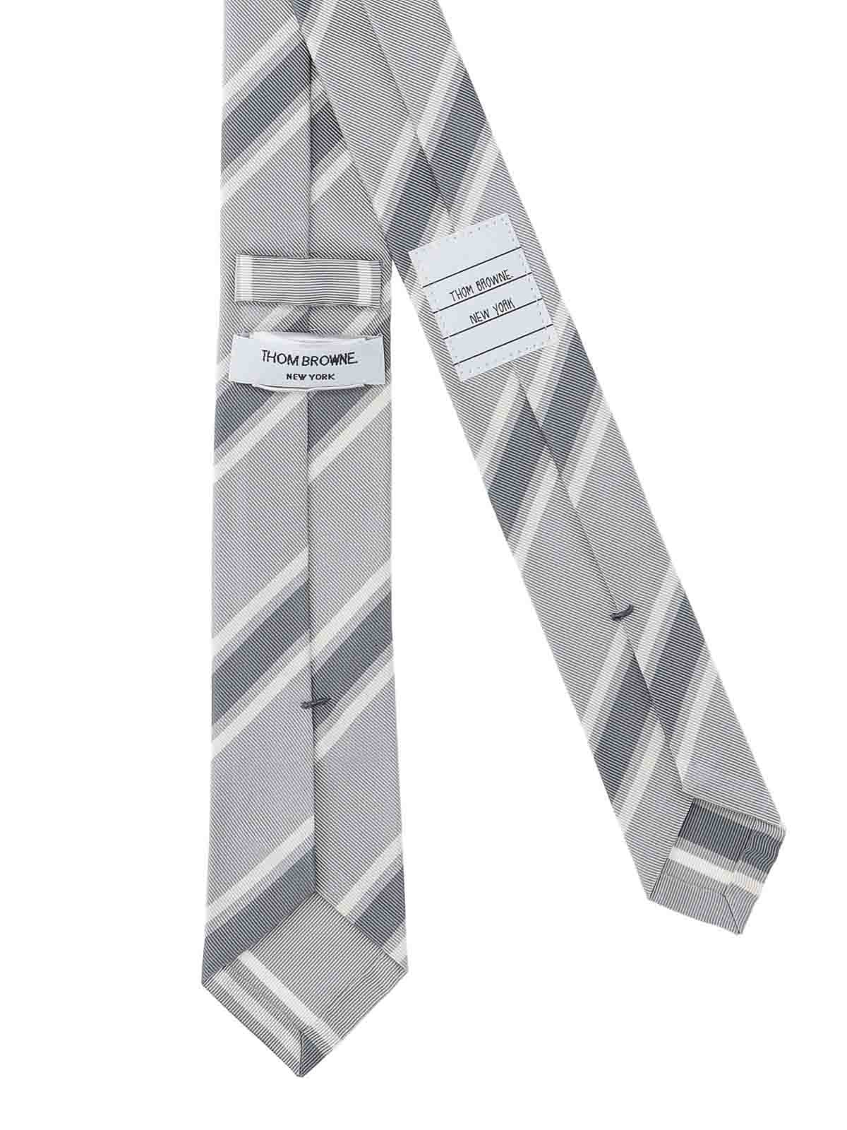 Thom Browne striped tie in gray silk blend, contrasting pattern, adjustable.