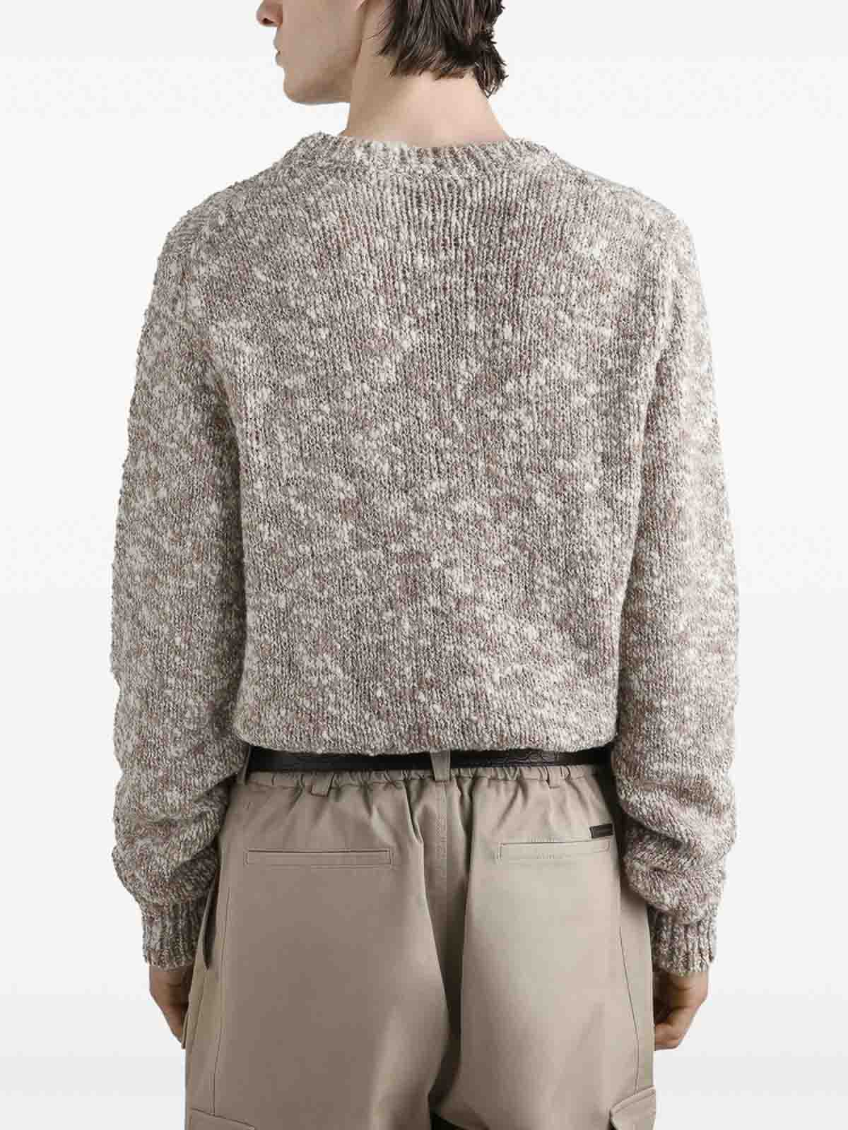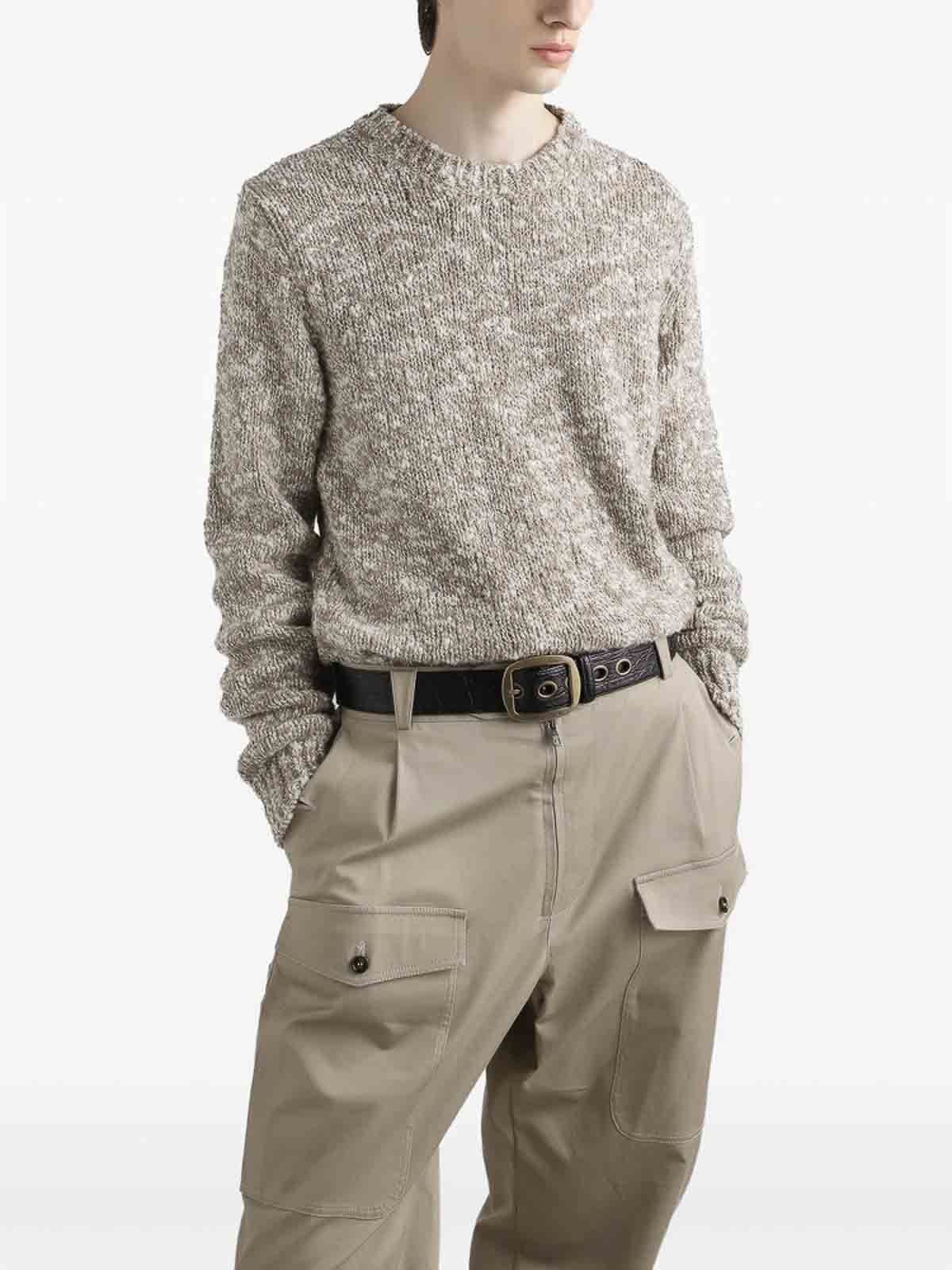 Beige speckled pattern crew neck long sleeves ribbed cuffs ribbed hem