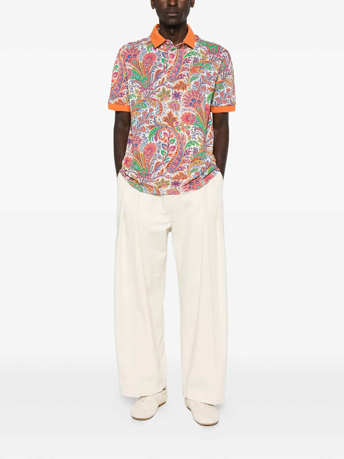Orange/multicolour paisley print short sleeves polo collar