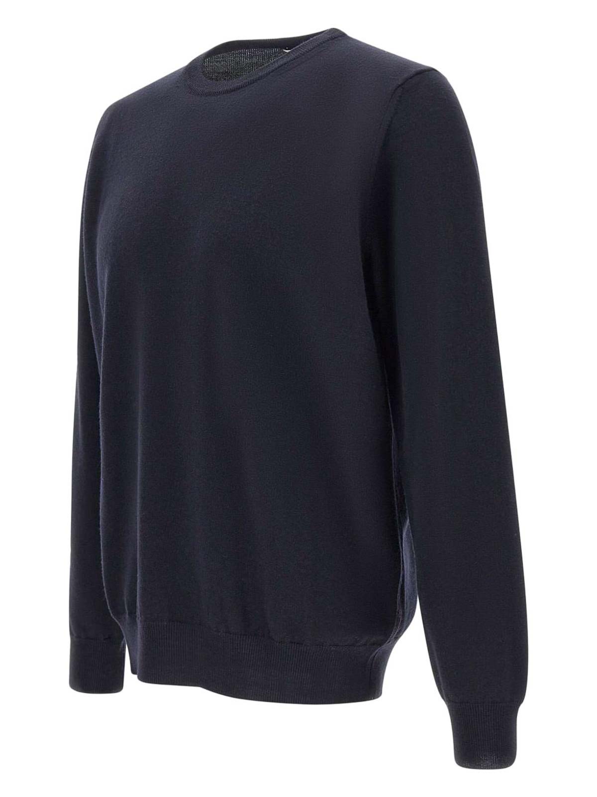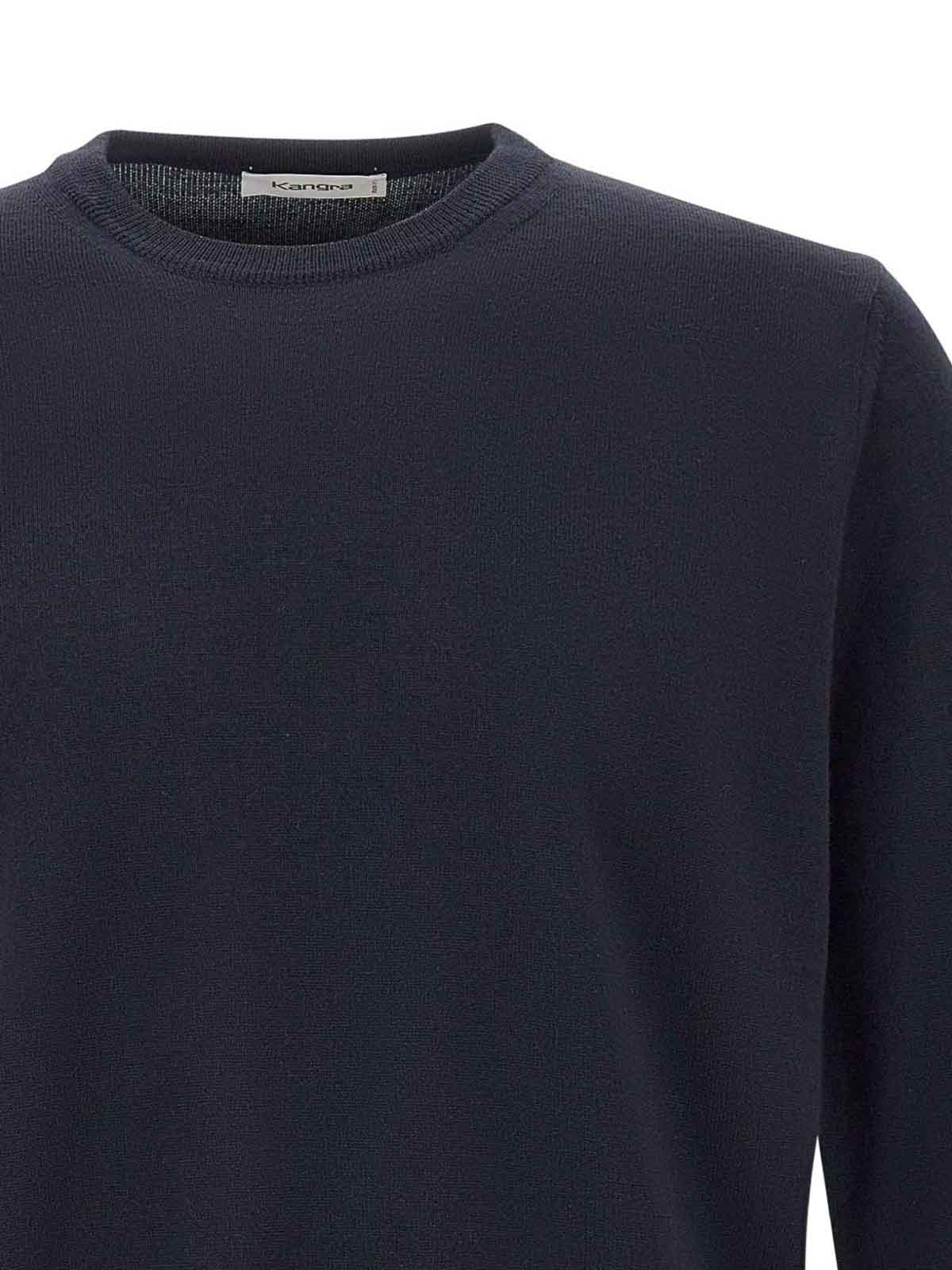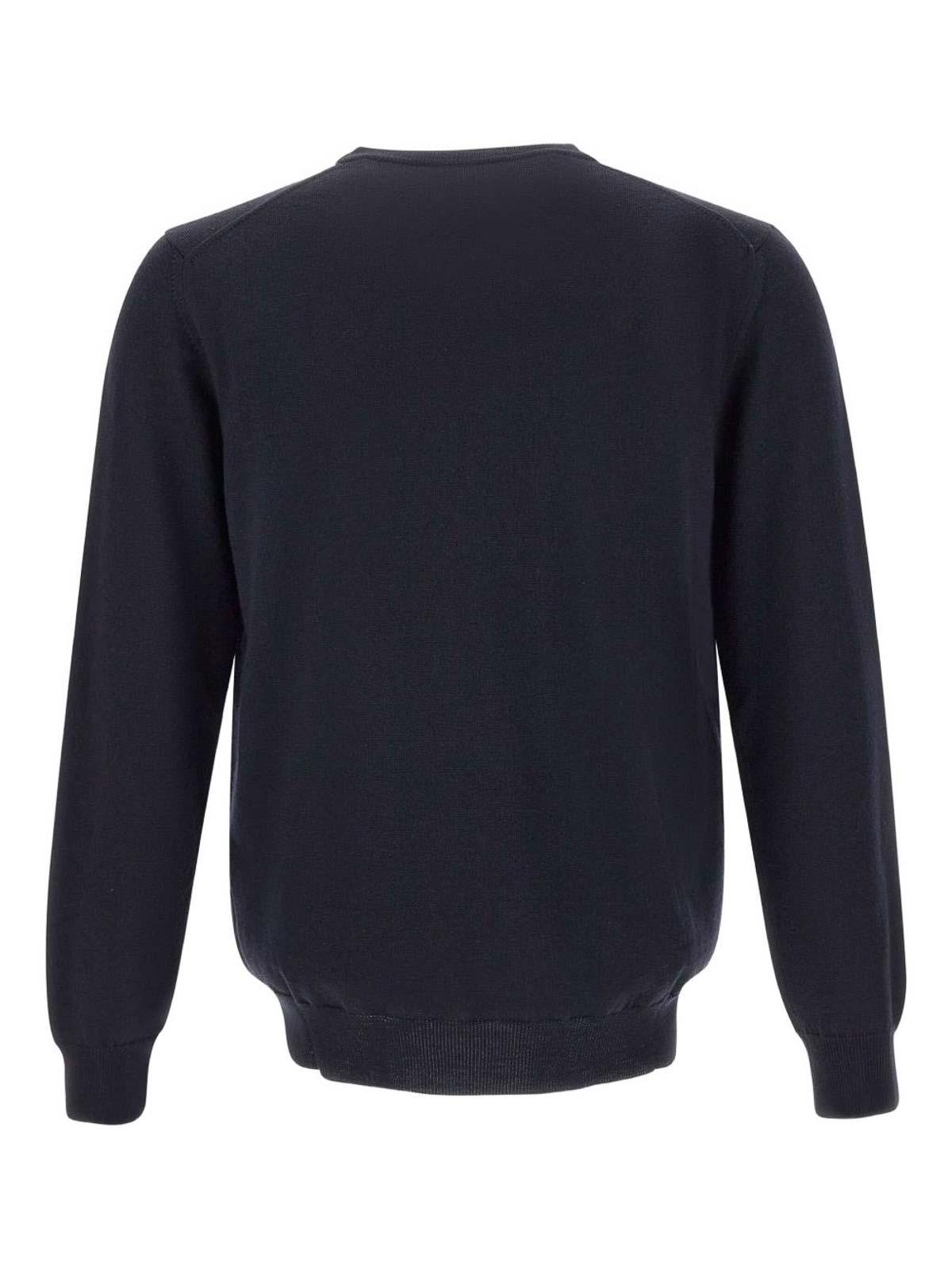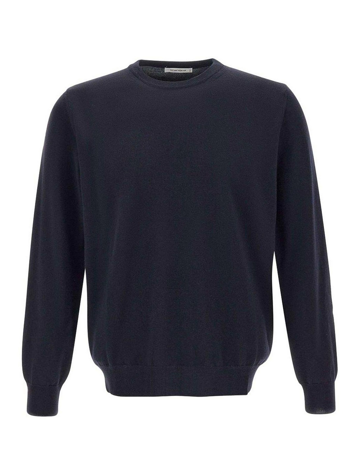 Midnight blue long sleeves crew neck ribbed edge knitted construction