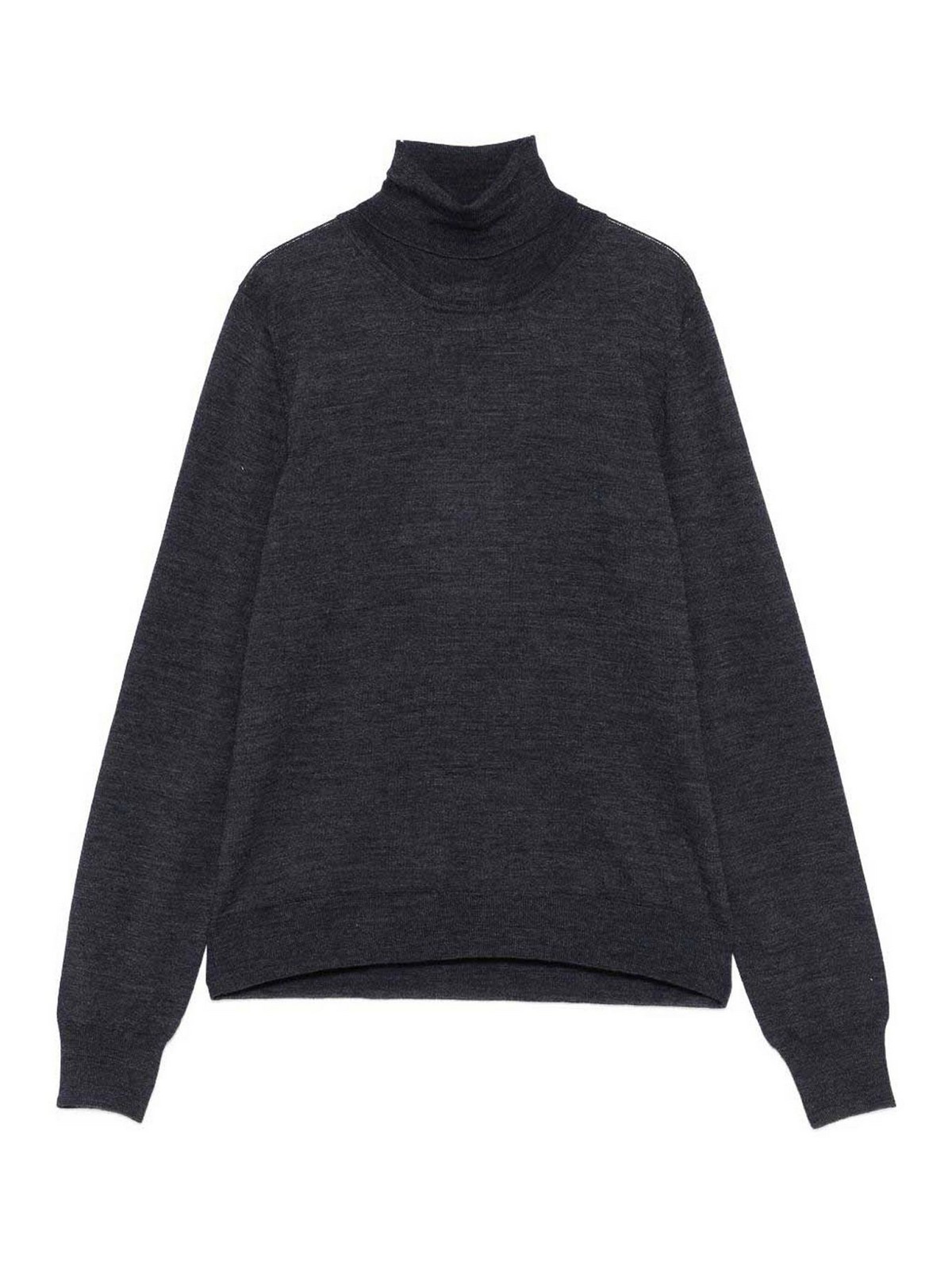 Dark blue turtleneck long sleeves ribbed cuffs and hem