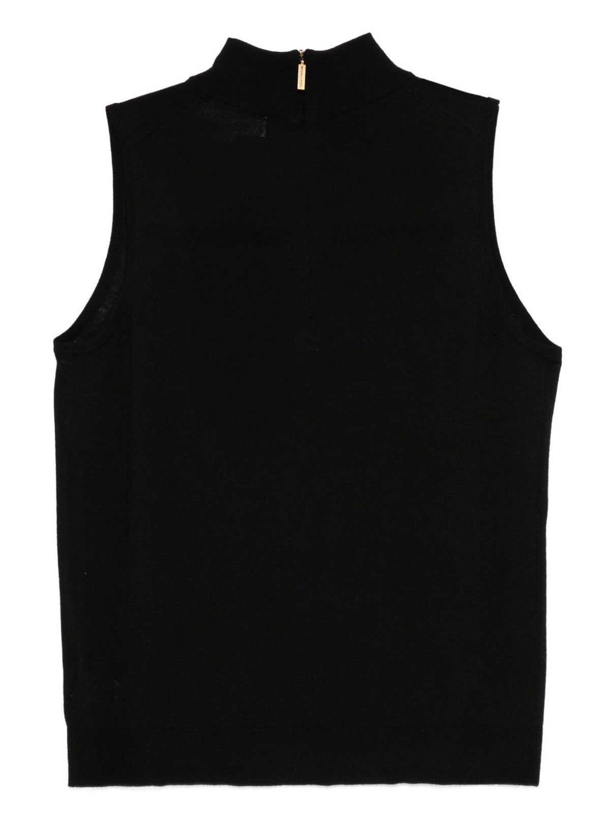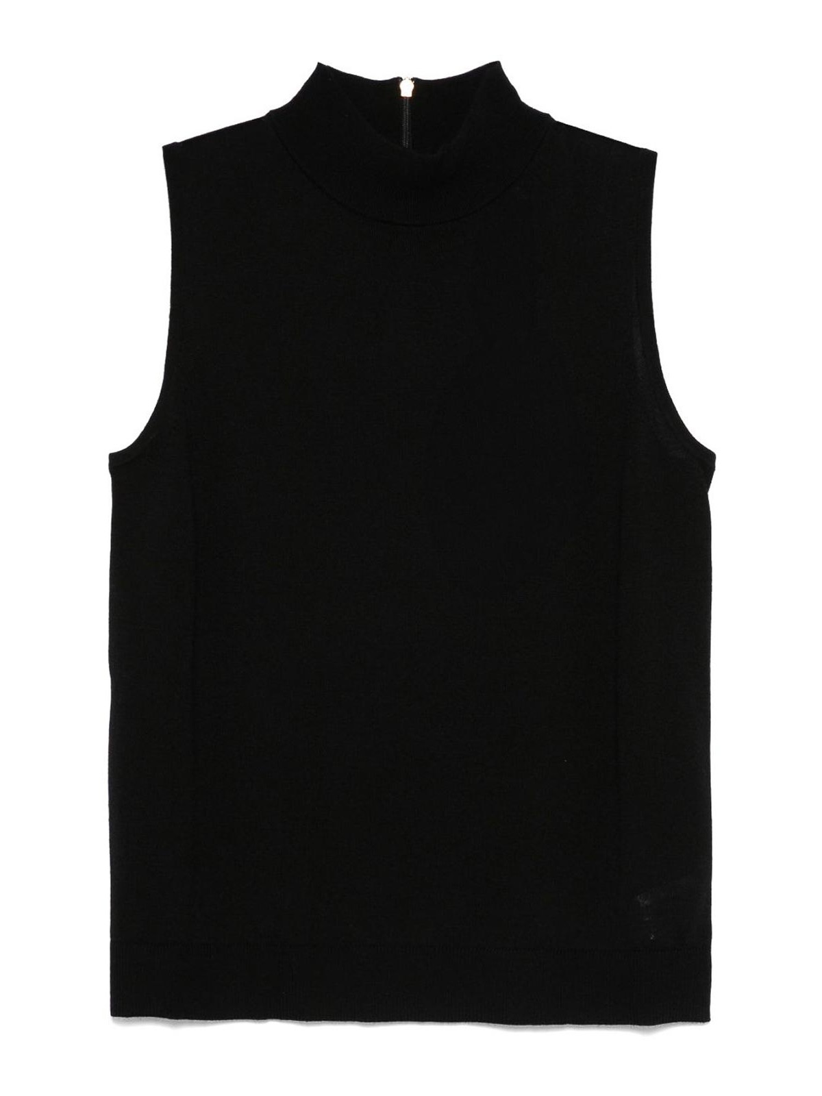 Black high neck sleeveless close-fitting straight hem back zip