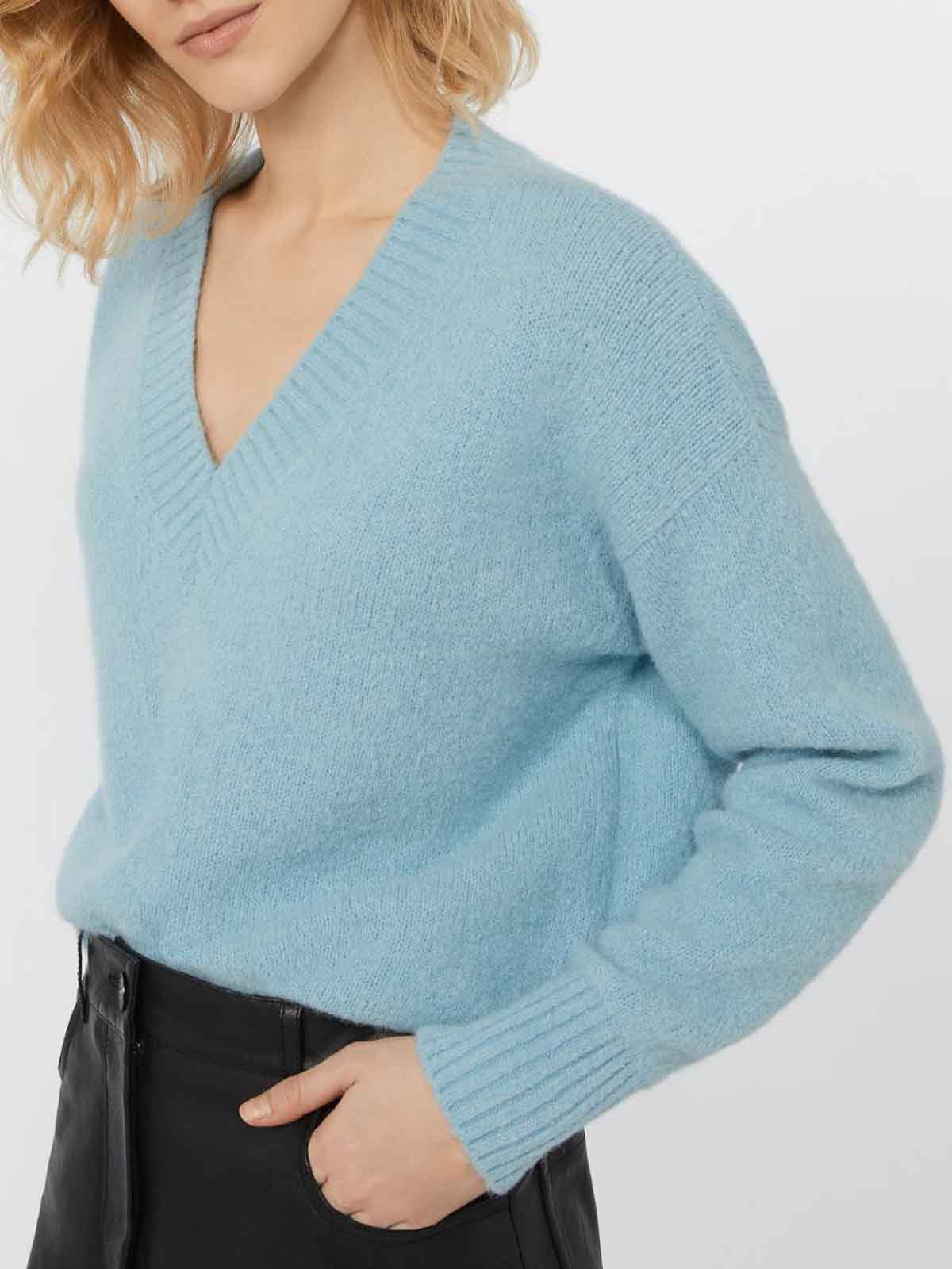 Visit sweater, 45% alpaca, 23% polyamide, 15% cotton, 15% modal, 2% elastan, sweater with soft fit, V -neck