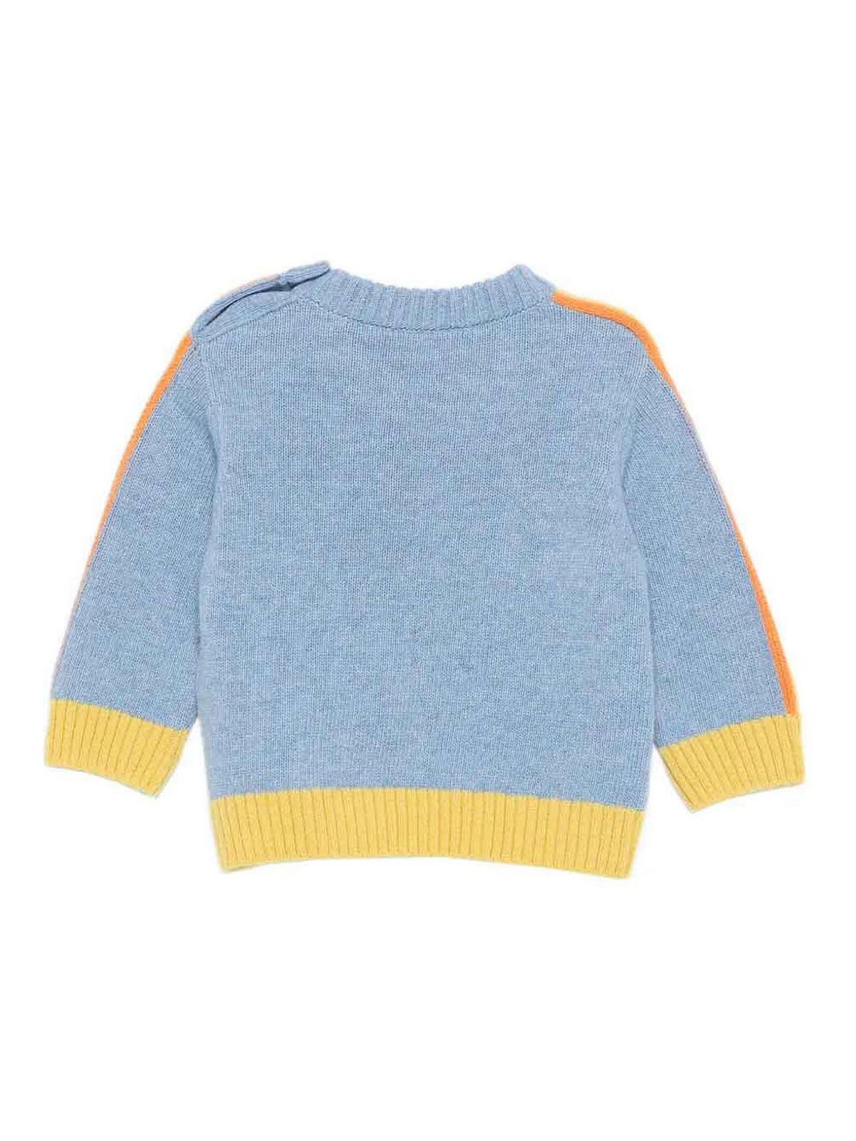 Sweater with pegasus motif features light blue pegasus motif ribbed hem, long sleeves, crew neck