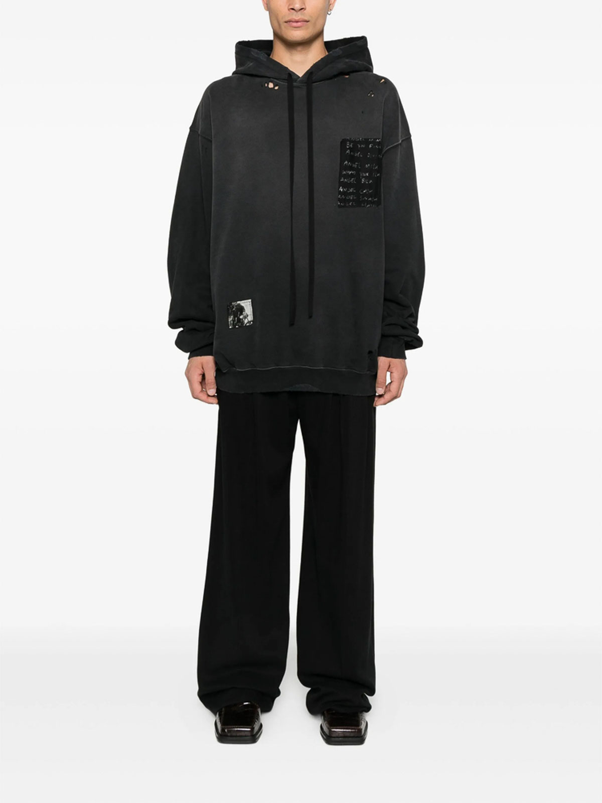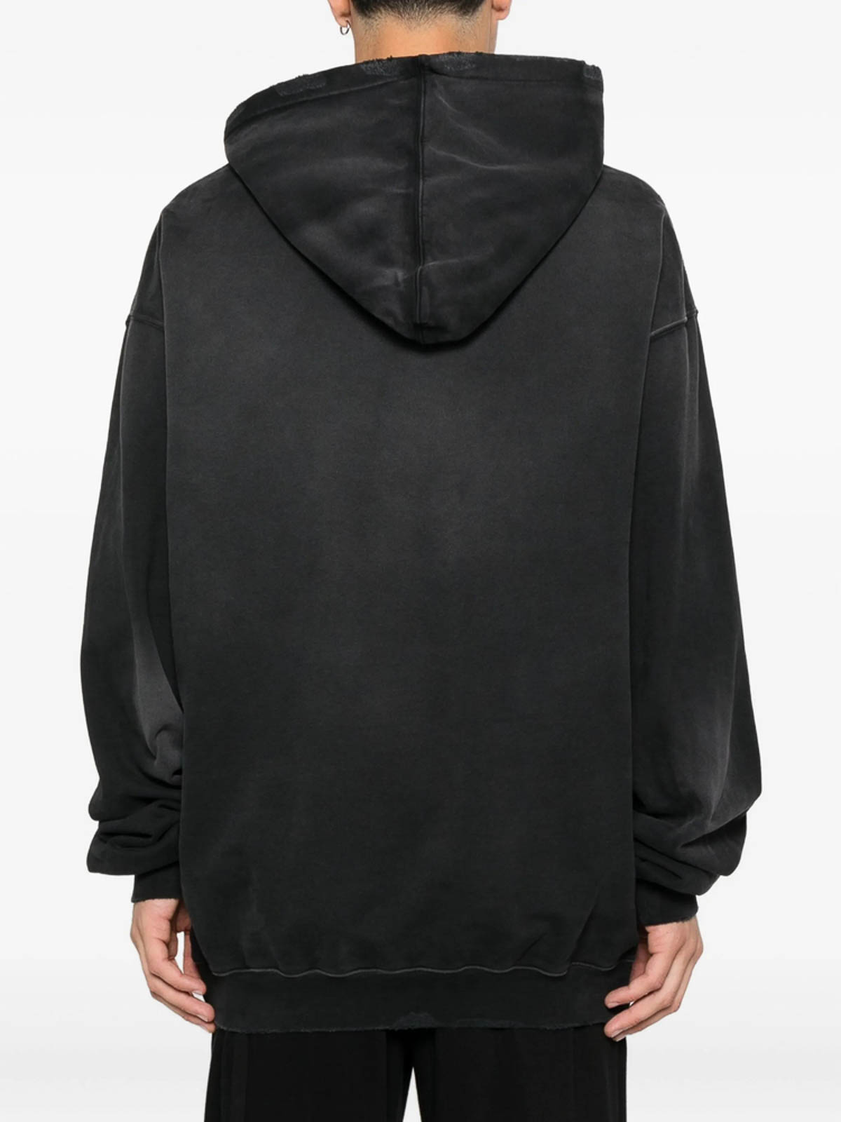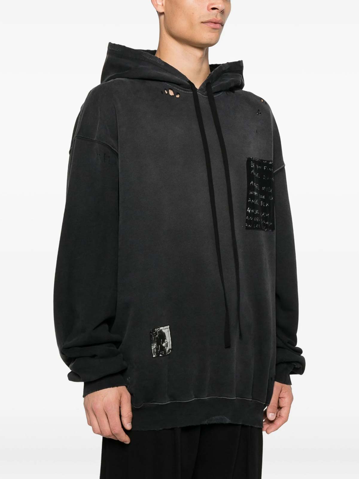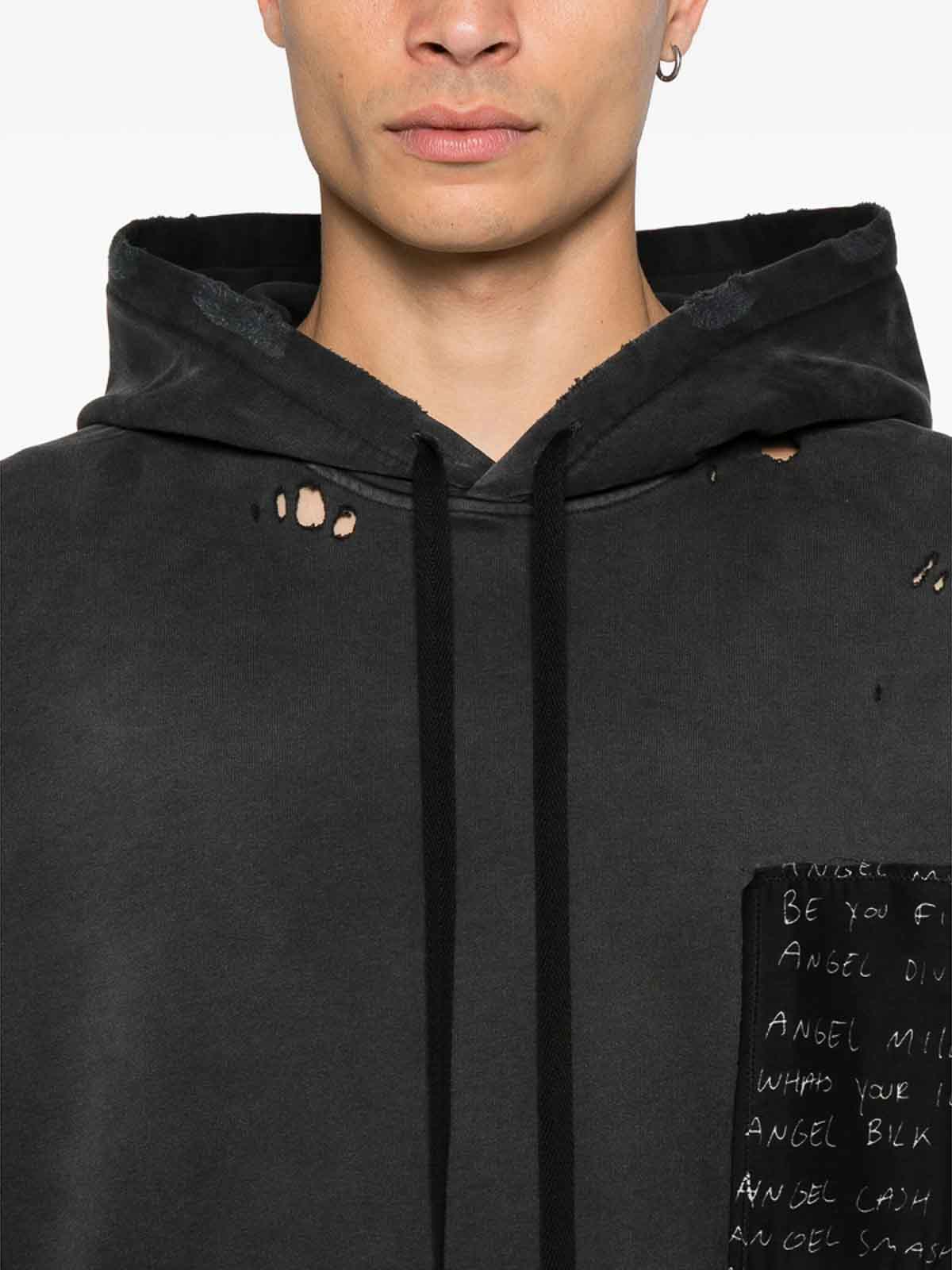 Black distressed detailing drawstring hood cuffed sleeves
