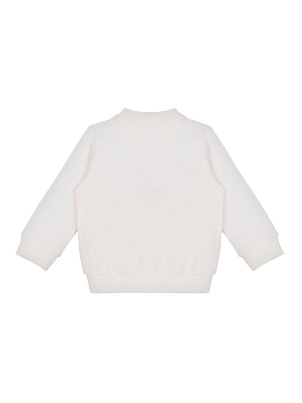 White embroidered teddy bear design crew neck snap button shoulder closures long sleeves