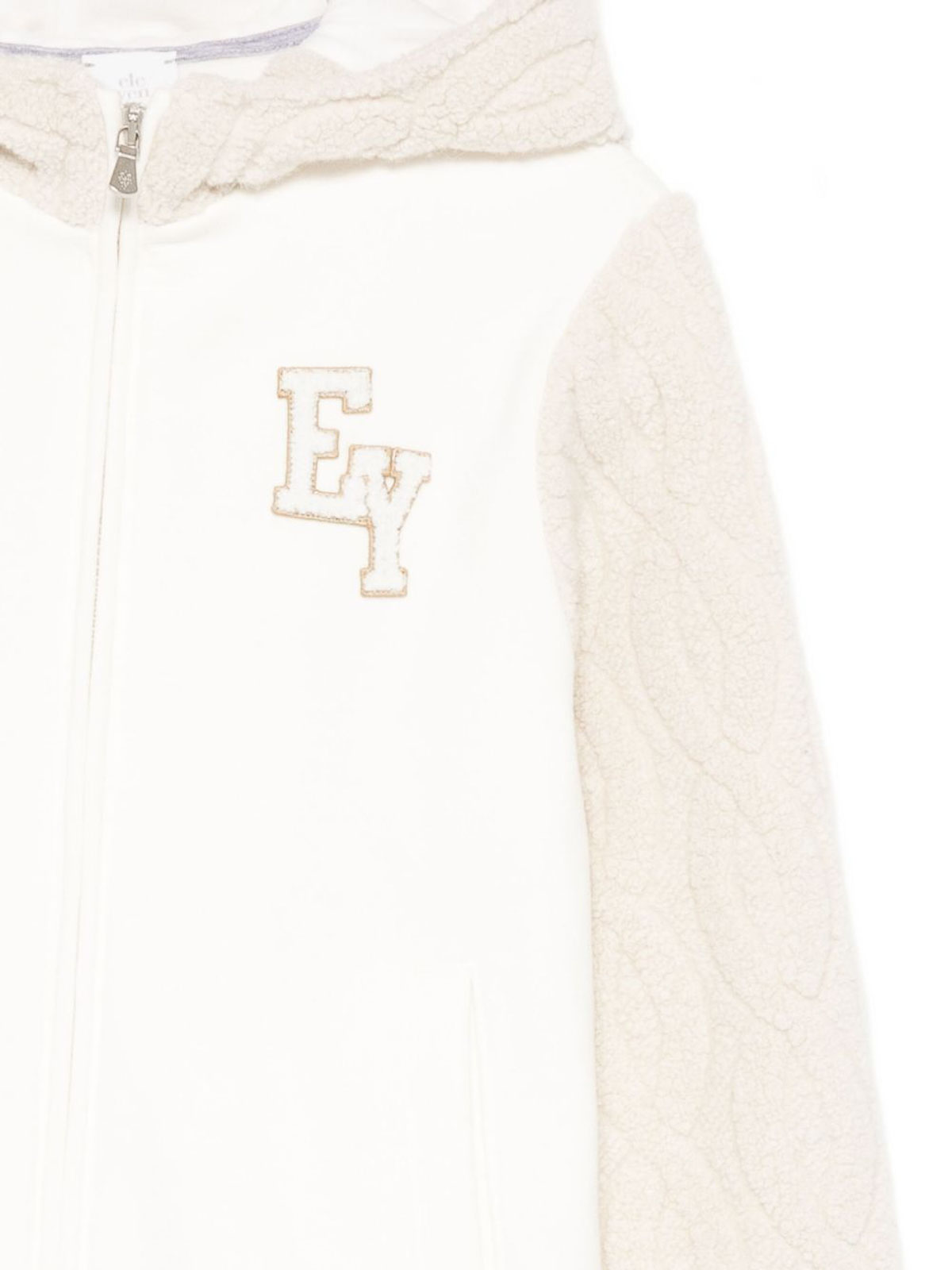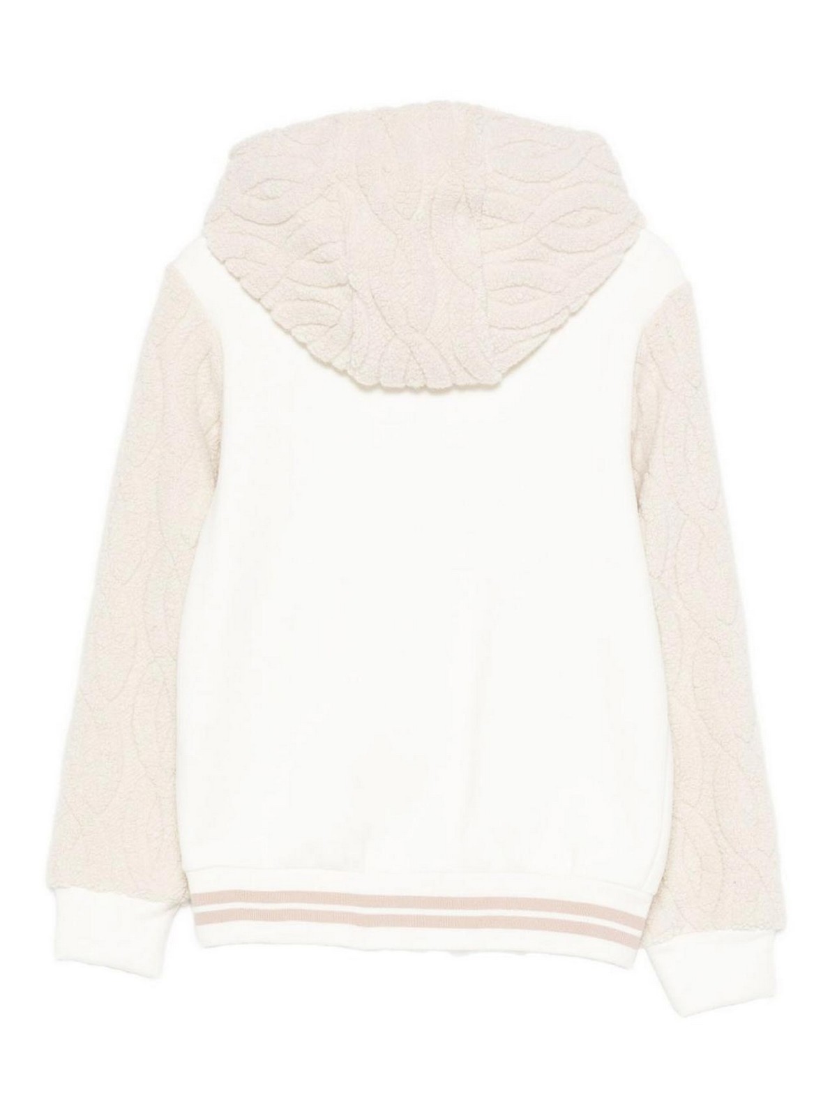 White beige logo sweatshirt with hood and zip buttoning