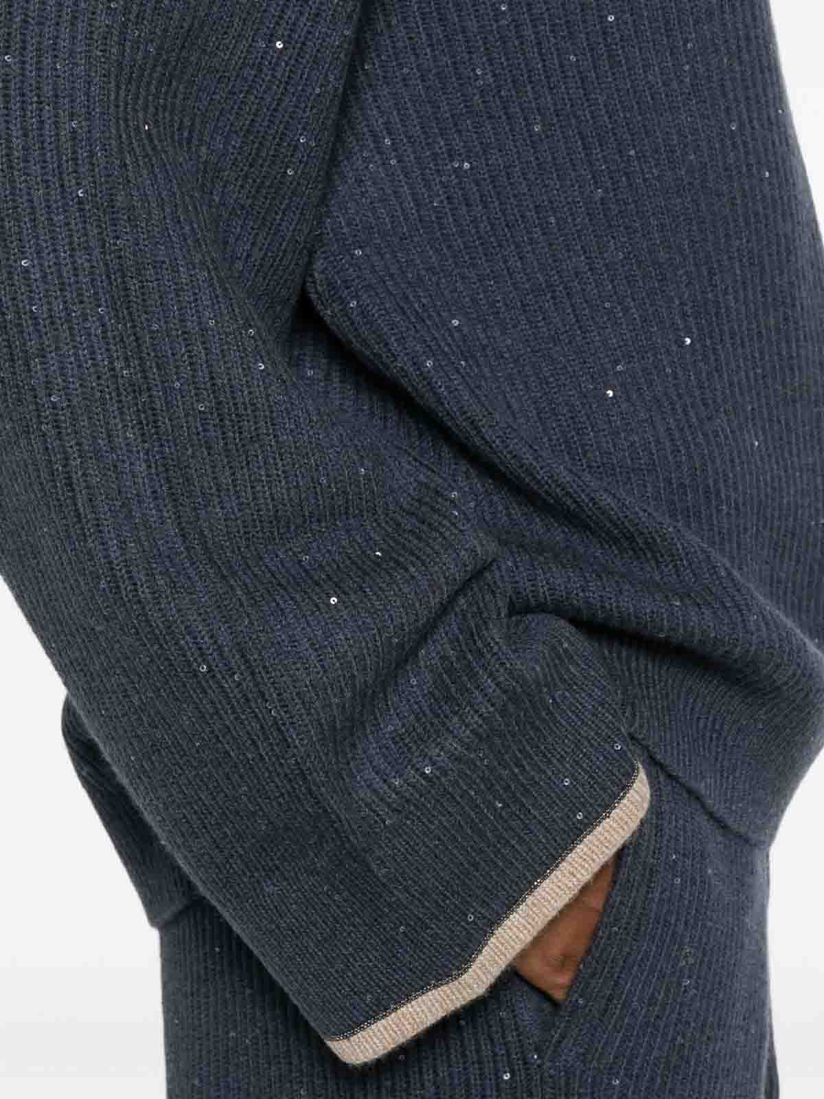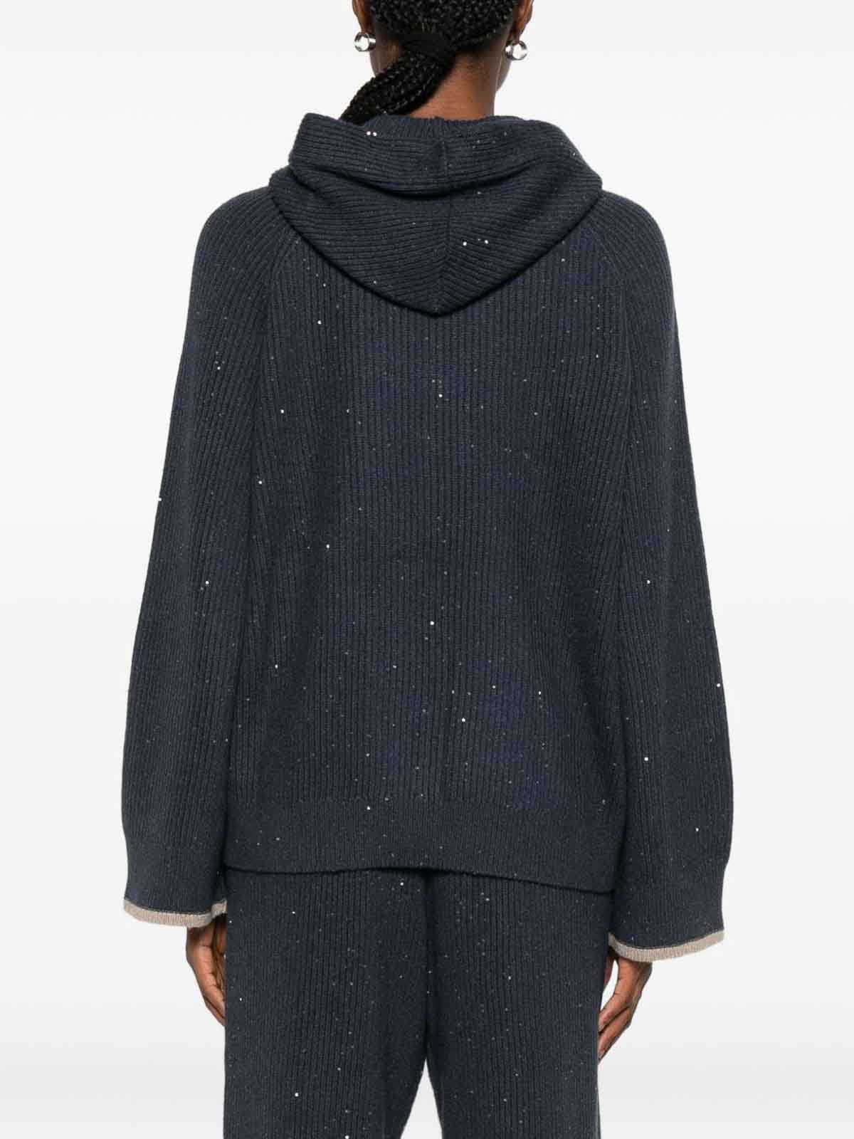 Origin Italy features navy blue ribbed knit hood long sleeves decoration with sequins