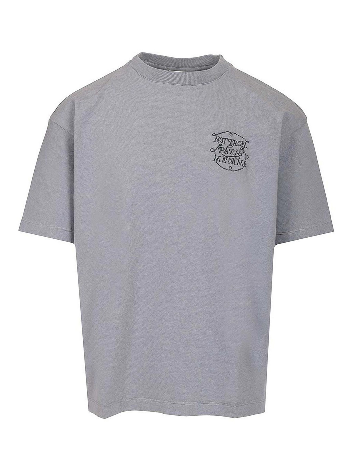 Drole de monsieur slogan T-shirt with interwoven slogan embroidered on the chest and back