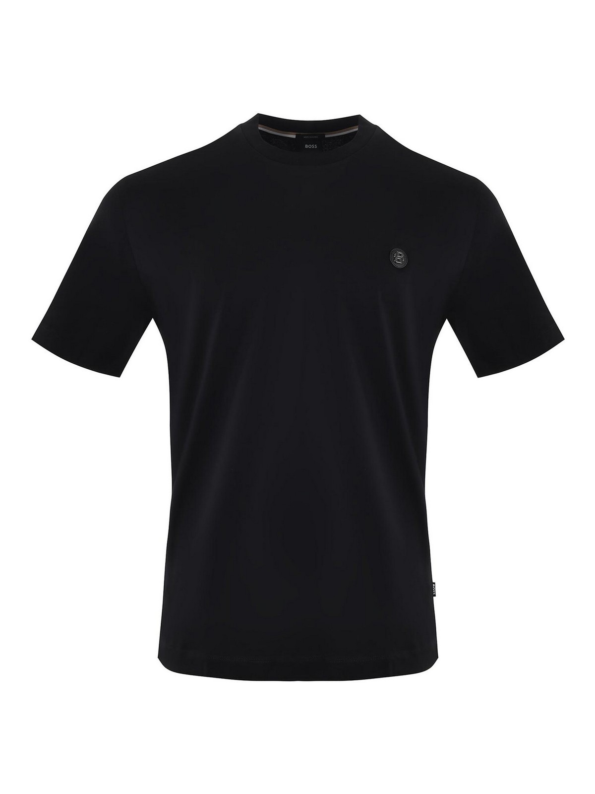 Boss T-shirt in black crew neck short applied logo measurement in photo m
