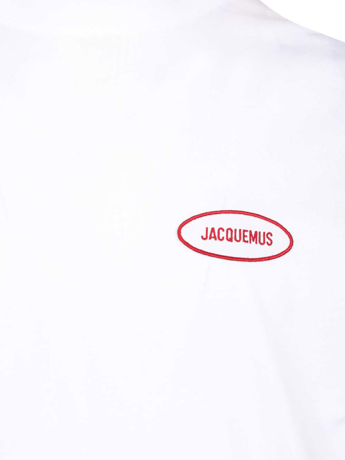 Jacquemus stazione T-shirt in finely ribbed with embroidered logo patch on the chest and embroidered patch on the hem ribbed crew neck and / sleeves