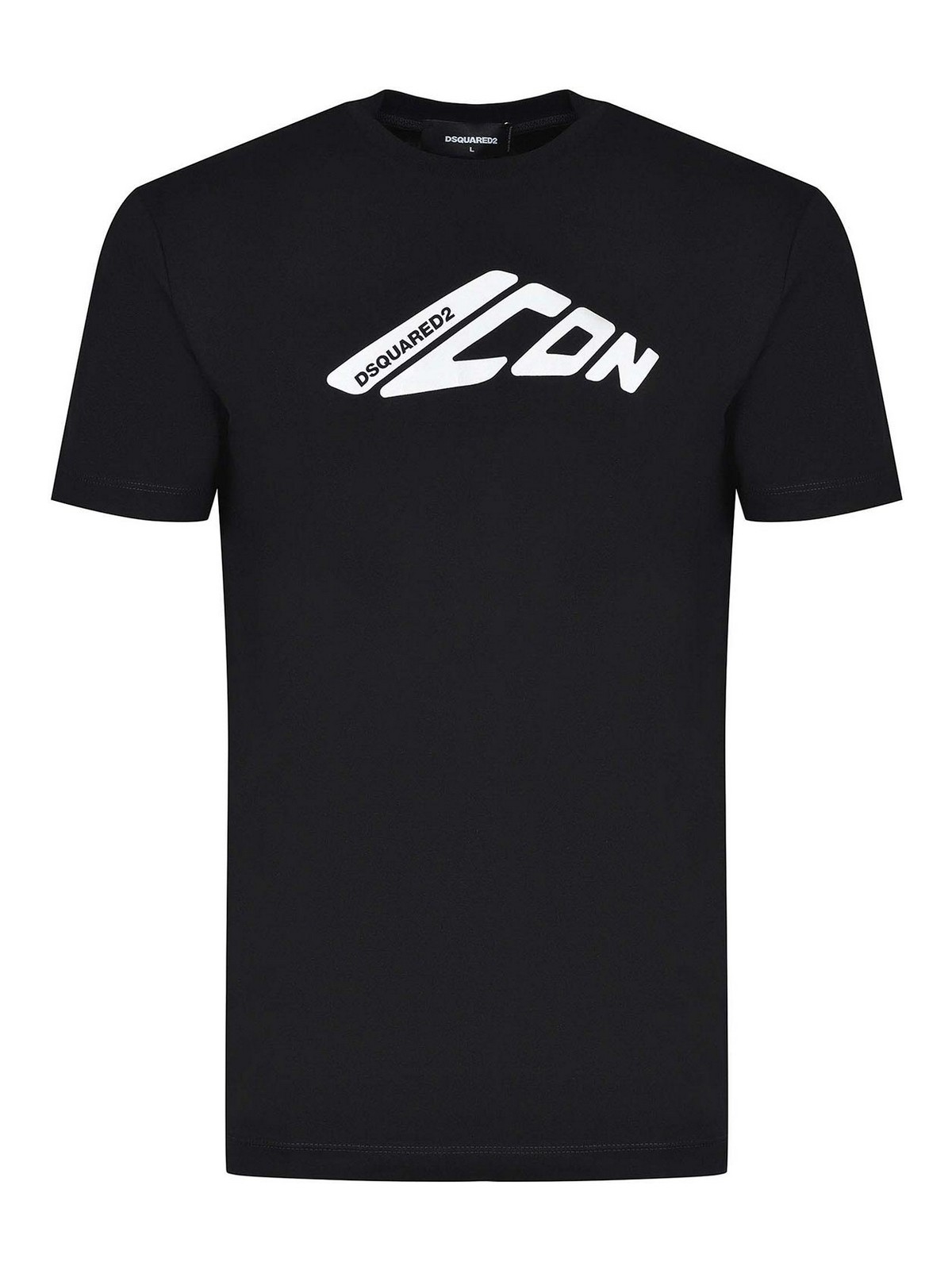 Dsquared2 t-shirt made of black cotton. ribbed crew neck. short sleeves. 'icon' writing and logo lettering on the chest in contrast. 100% cotton