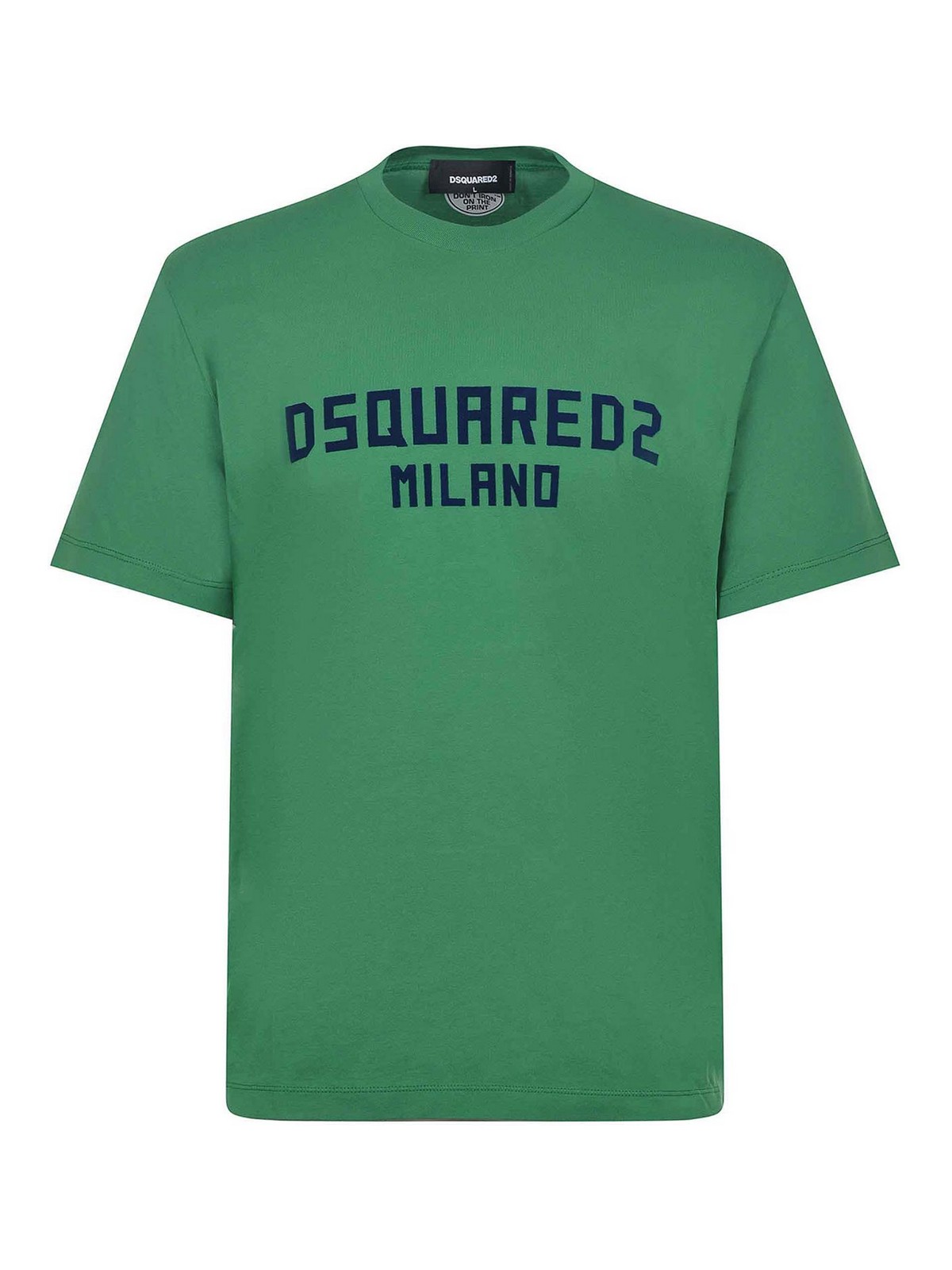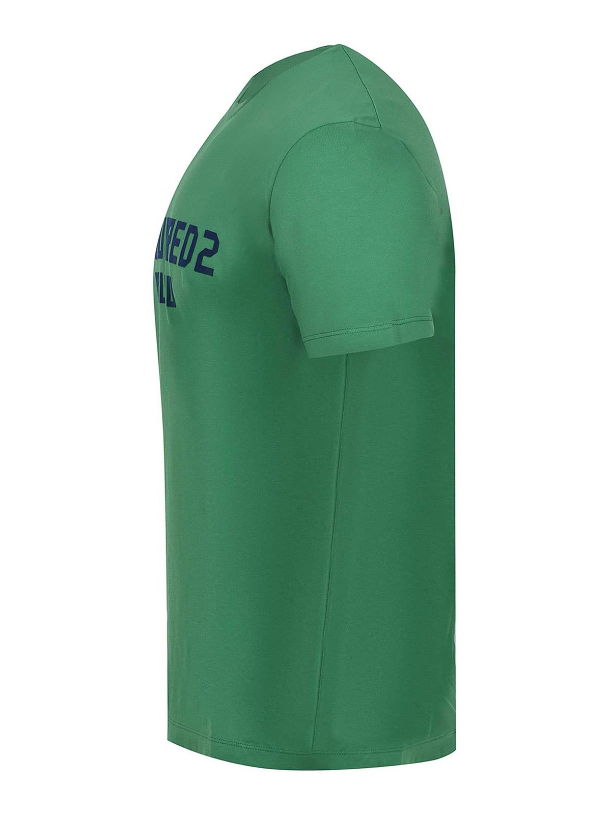 Dsquared2 t-shirt made of green cotton. ribbed crew neck. short sleeves. logo lettering on the chest with contrasting velvet effect. 100% cotton made in italy.