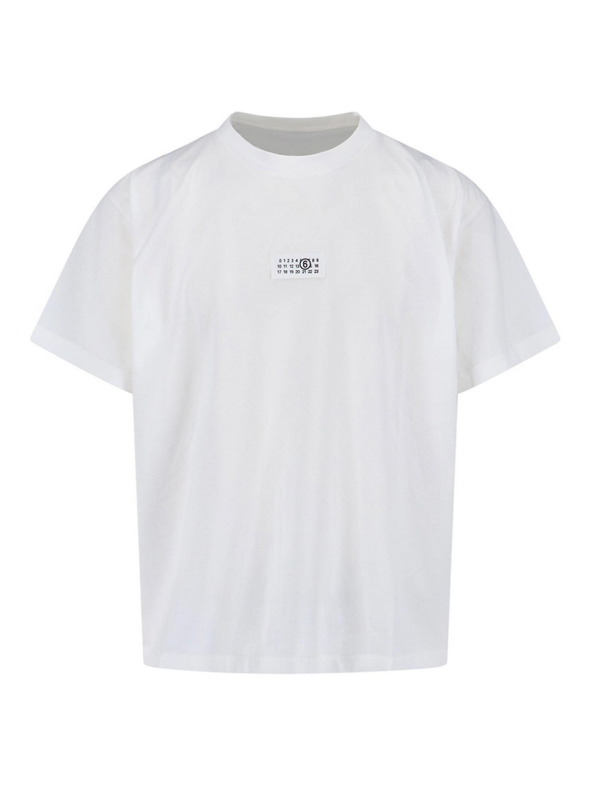 numeric mm6 maison margiela t-shirt, in white cotton, crew neck, dropped shoulders, short sleeves, numeric logo label on the front, ribbed finishes, straight hem.