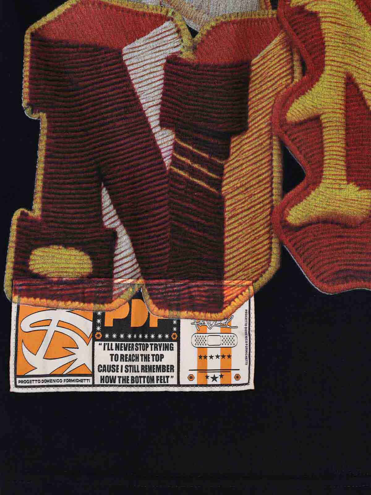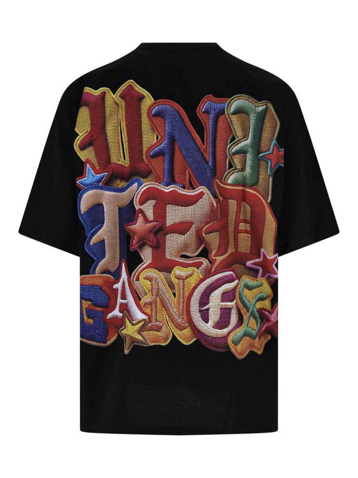 the boy pdf pdf t-shirt, in black cotton, crew neck, dropped shoulders, maxi multicolor print on the front, logo patch detail on the front, maxi print on the back, straight hem.